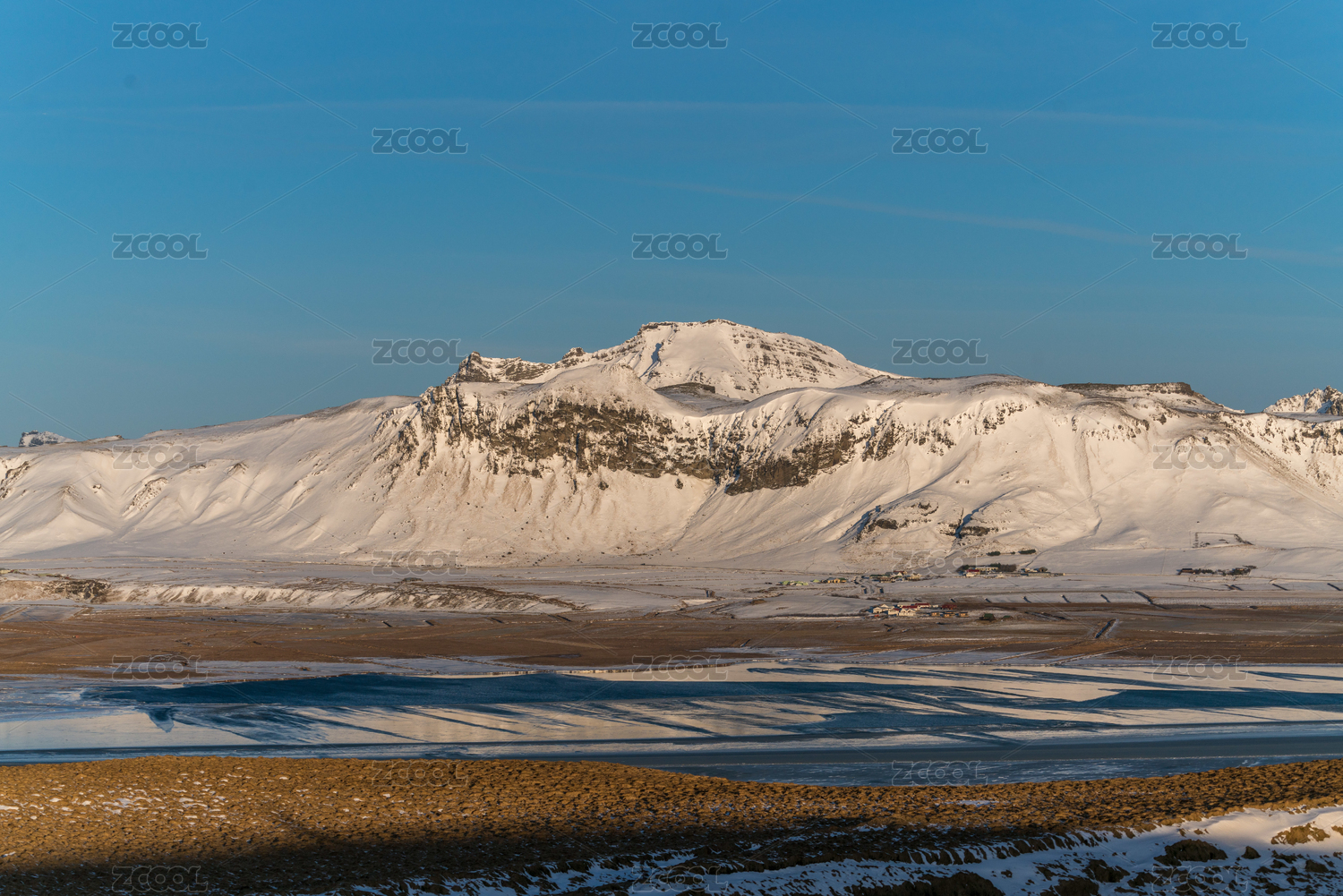 冬季冰岛冰山雪地与冰川