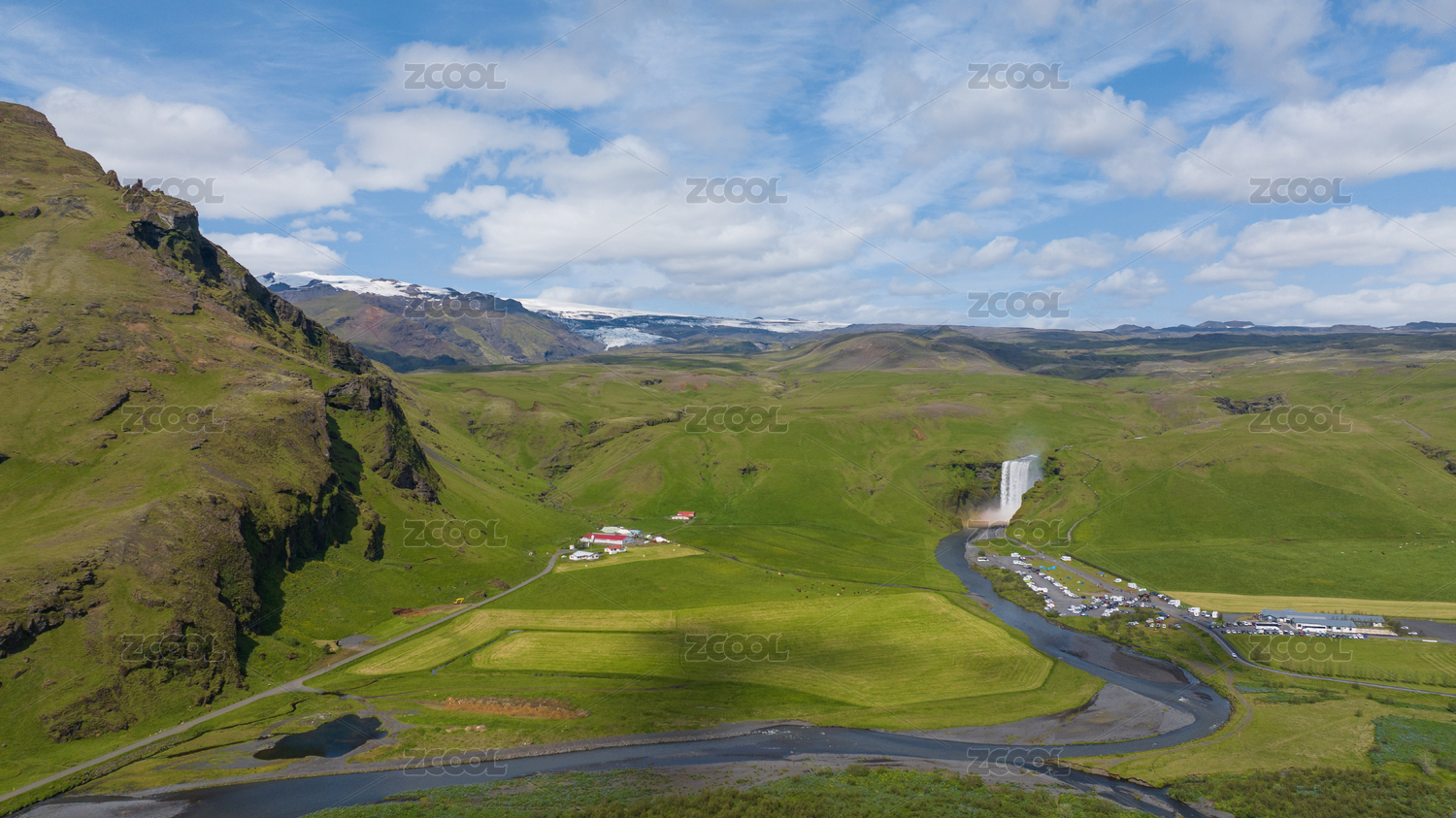 山地地貌,山,山脉,天空,高地,旅游,斯科加瀑布附近,冰岛,蓝天,河
