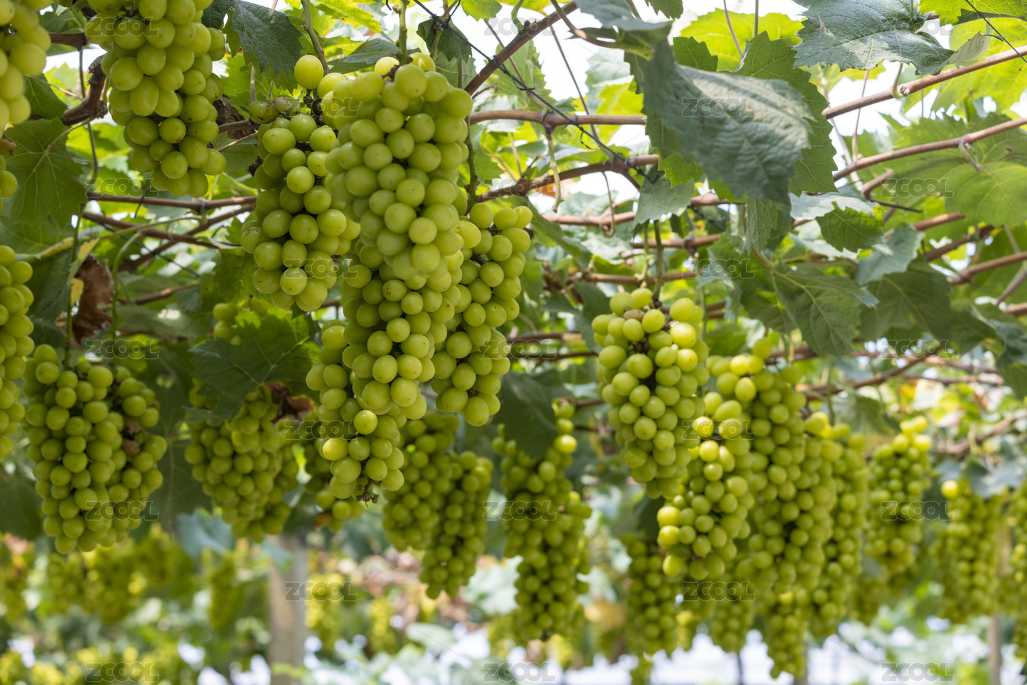 葡萄棚内成熟待摘的新鲜葡萄