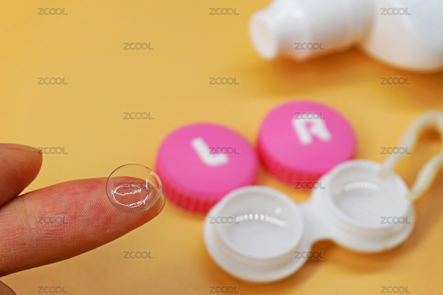 橙色背景中月抛日抛隐形眼镜盒