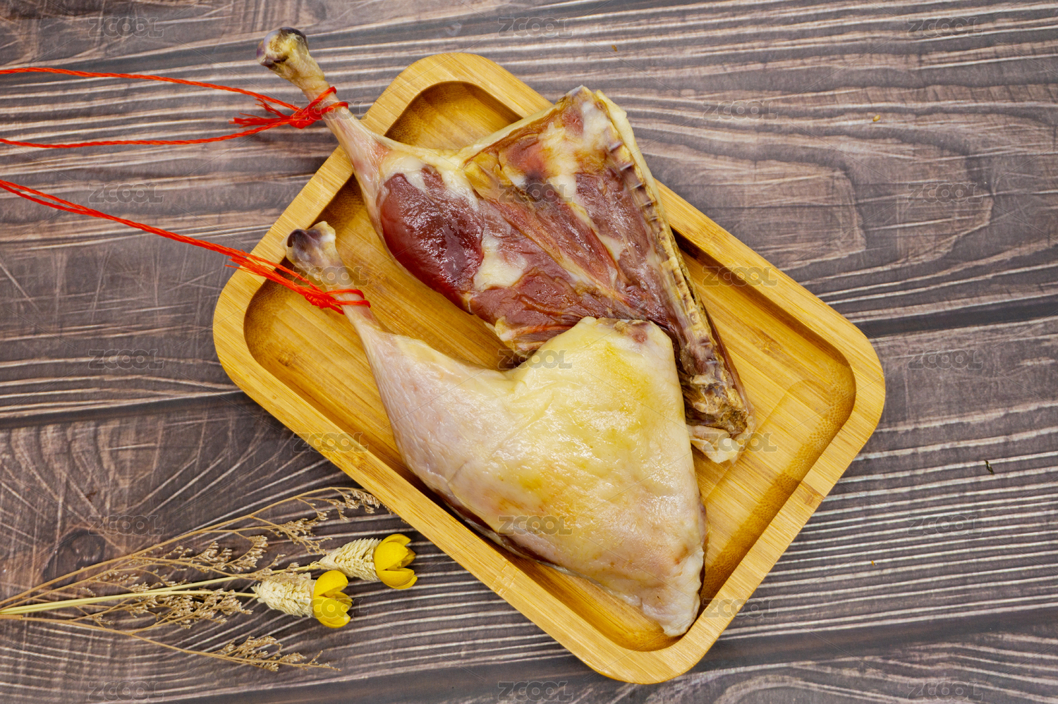 木桌背景新鲜食材腊鸭腿