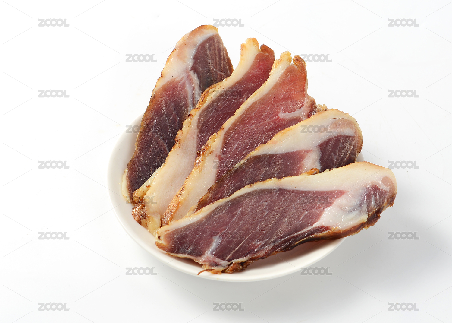 白背景上摆放的腊肉腊羊腿