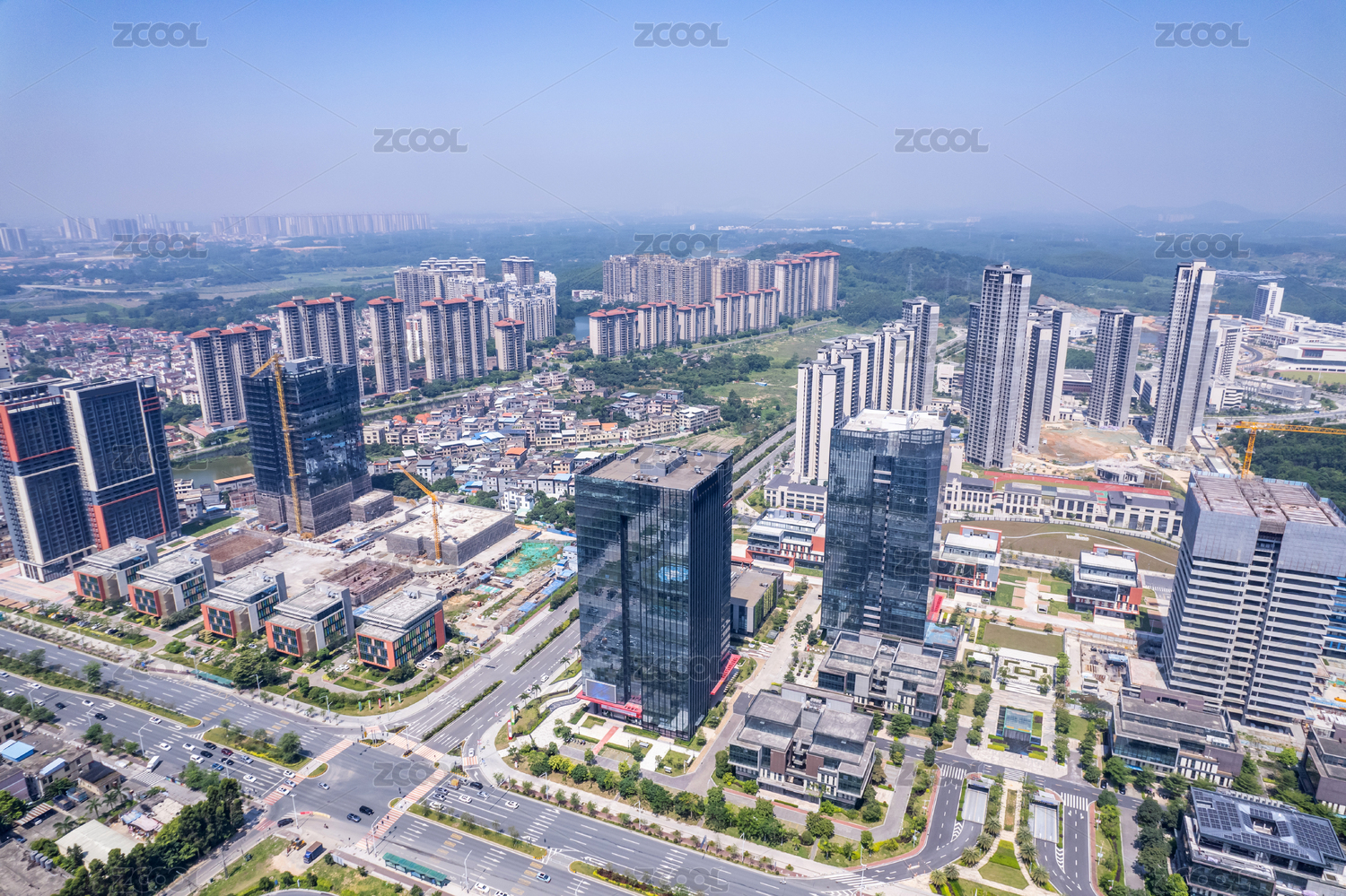 江门蓬江区万达广场建筑蓝天航拍拍摄