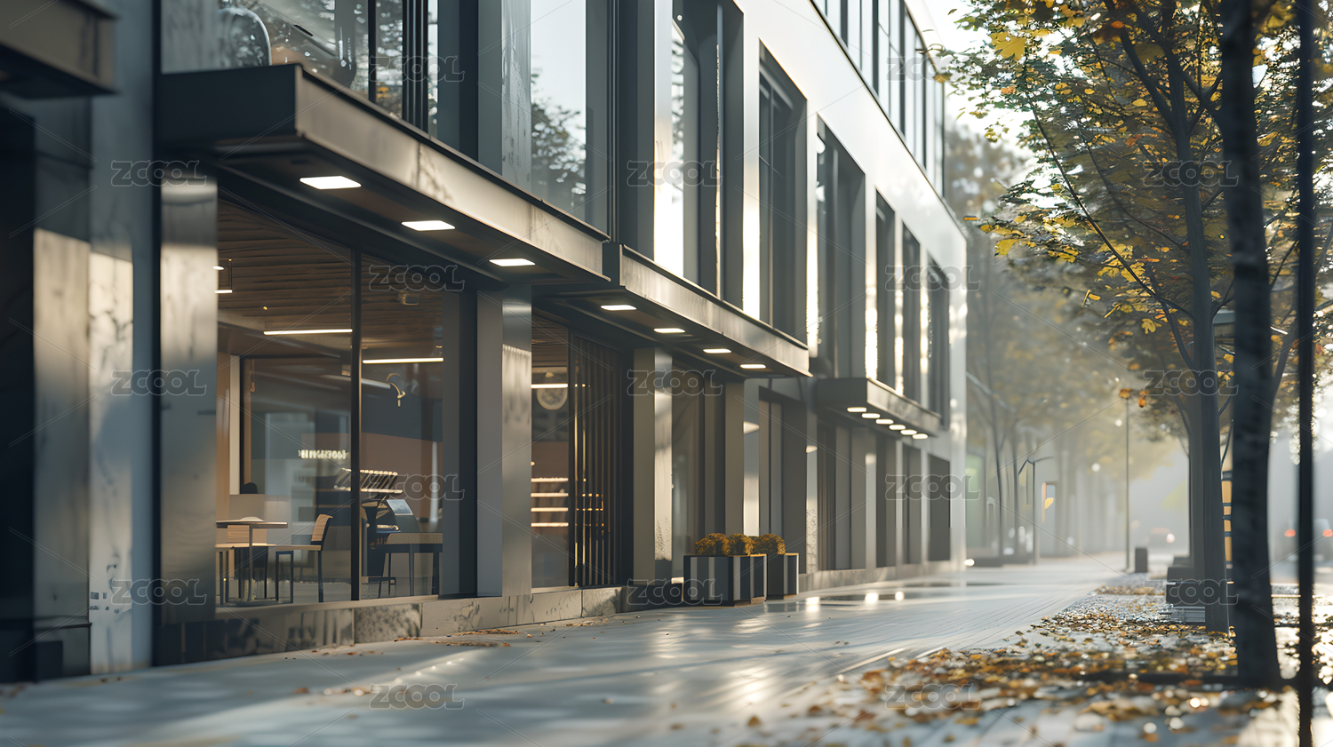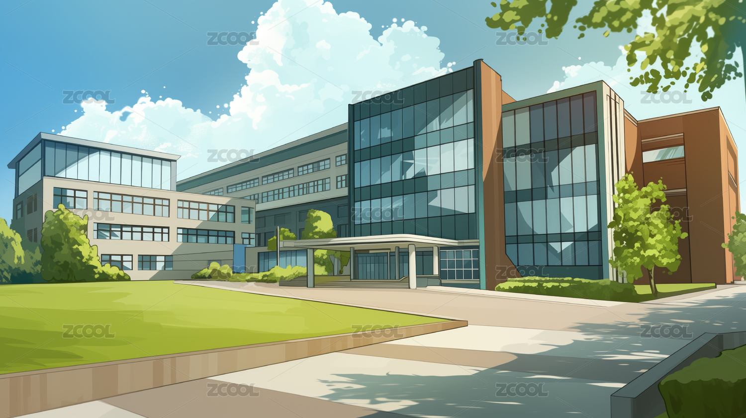 抽象插画风商业写字楼,城市天际线玻璃幕墙