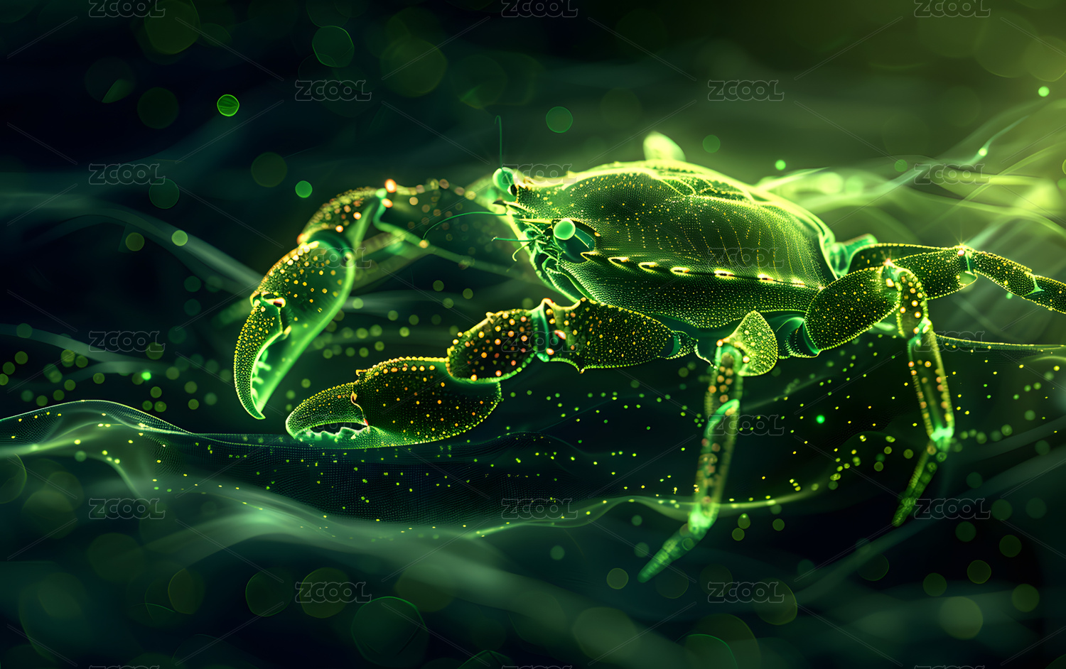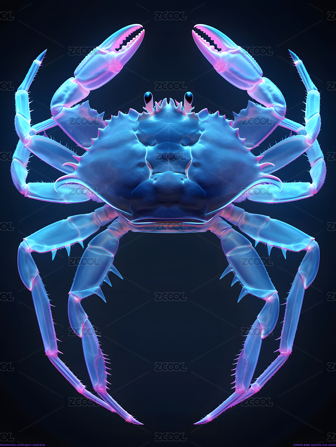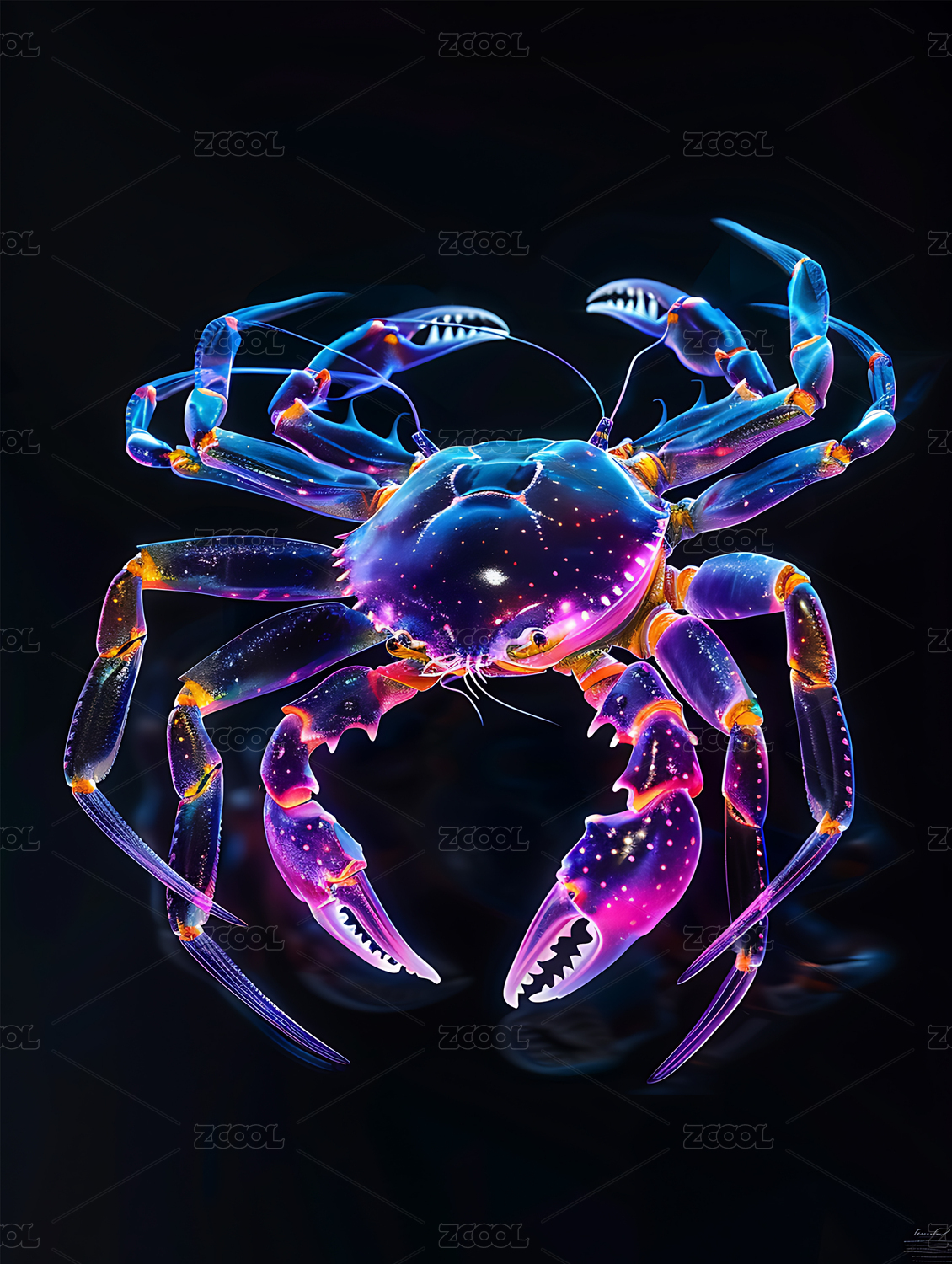 AIGCFG,赛博,朋克,霓虹灯,螃蟹,特写,动物,未来感,科技,虚拟