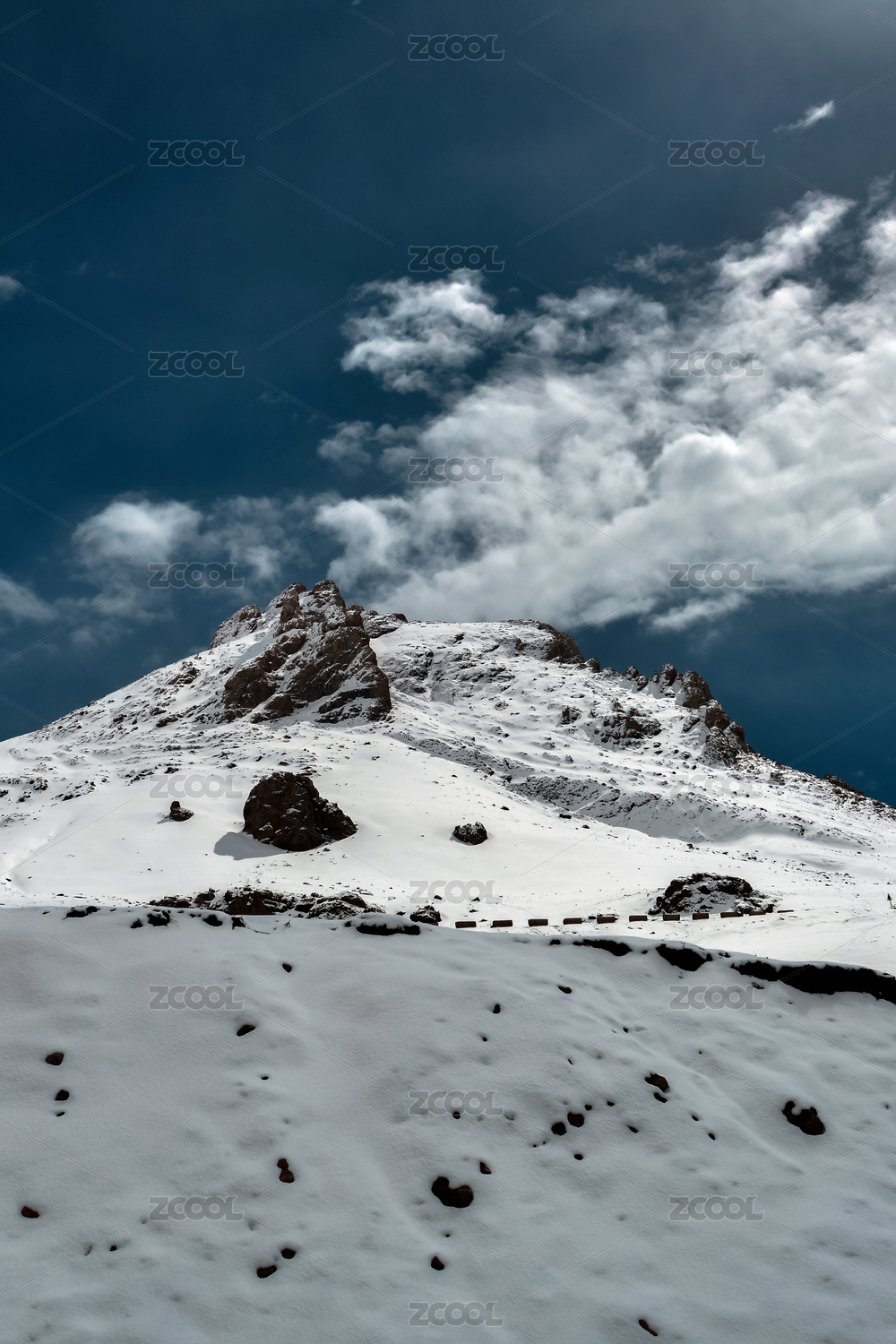 蓝天白云下的巍峨雪山