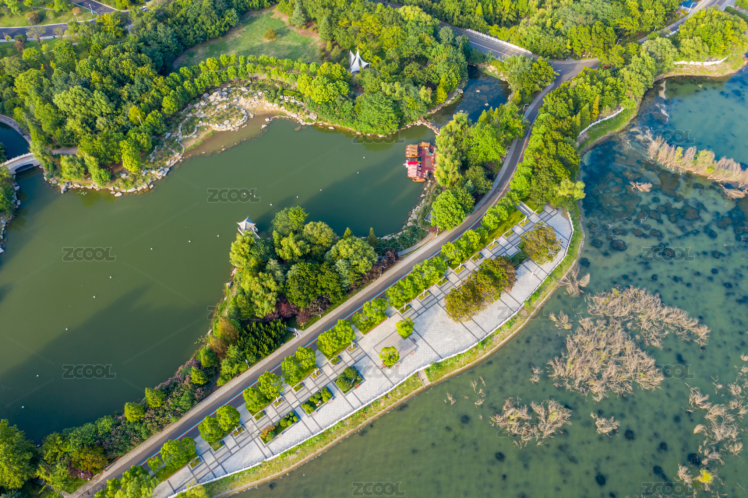 湖北武汉金银湖国家城市湿地公园局部俯拍