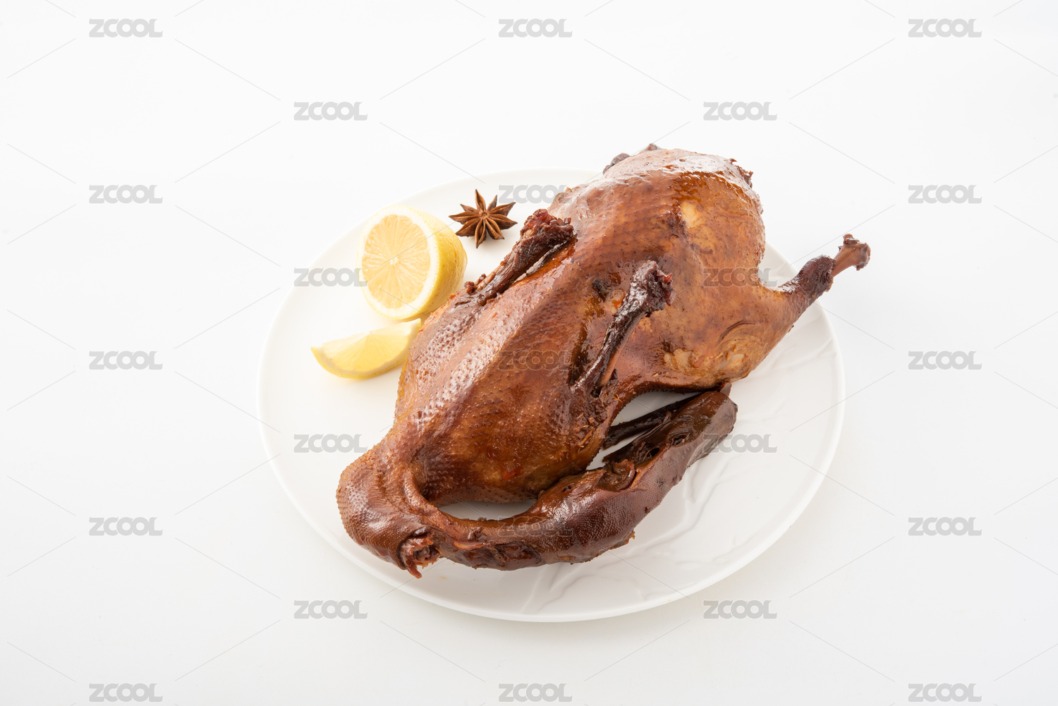 白色背景里的粤式烧鸭