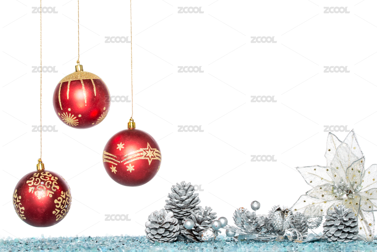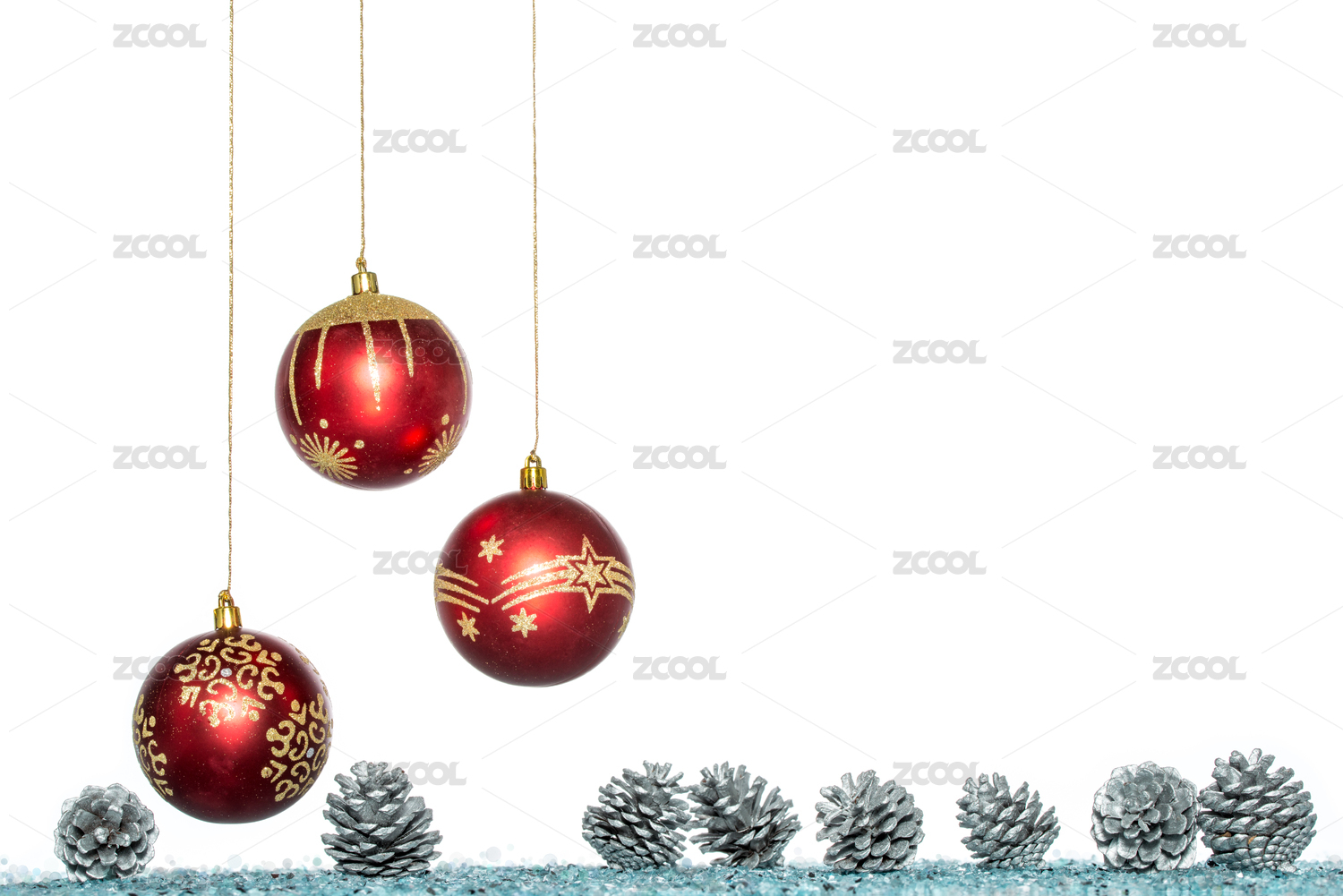 豪华圣诞球和松塔,挂饰,被隔绝在白色