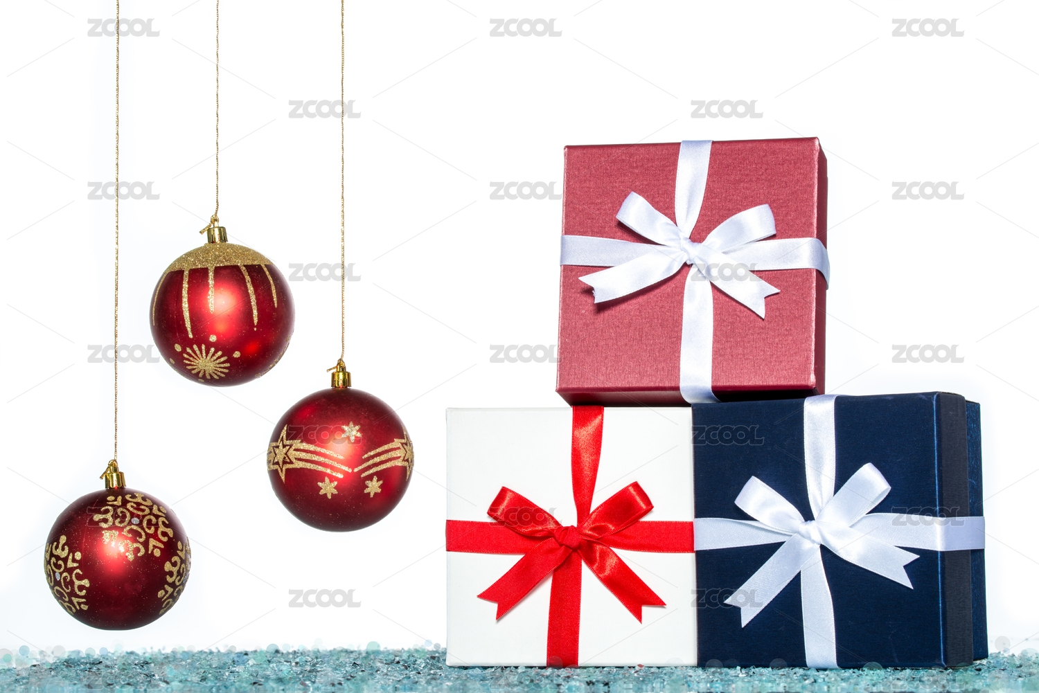 圣诞节装饰,圣诞礼盒和彩色的圣诞球在室内