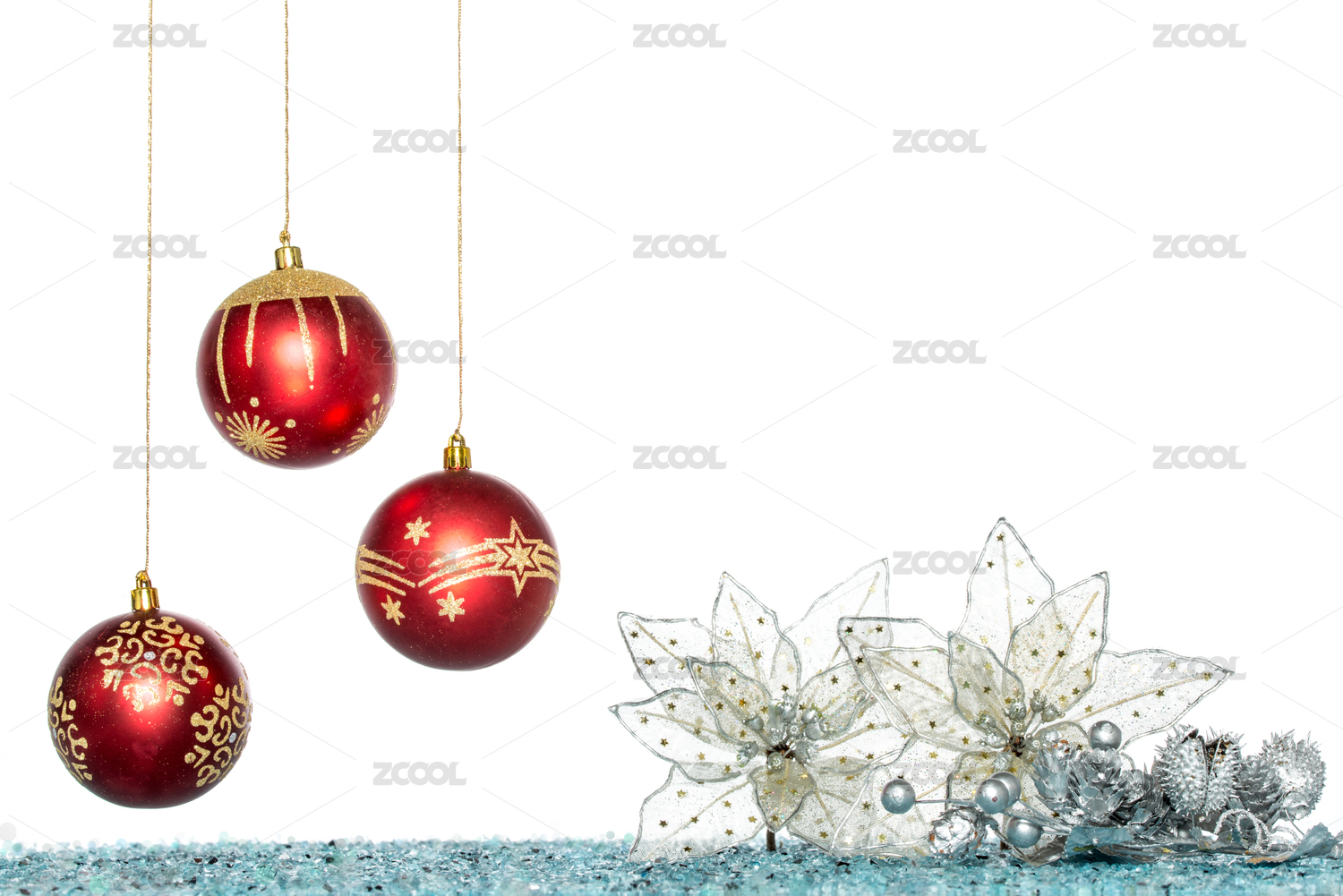 豪华圣诞球和花,挂饰,被隔绝在白色