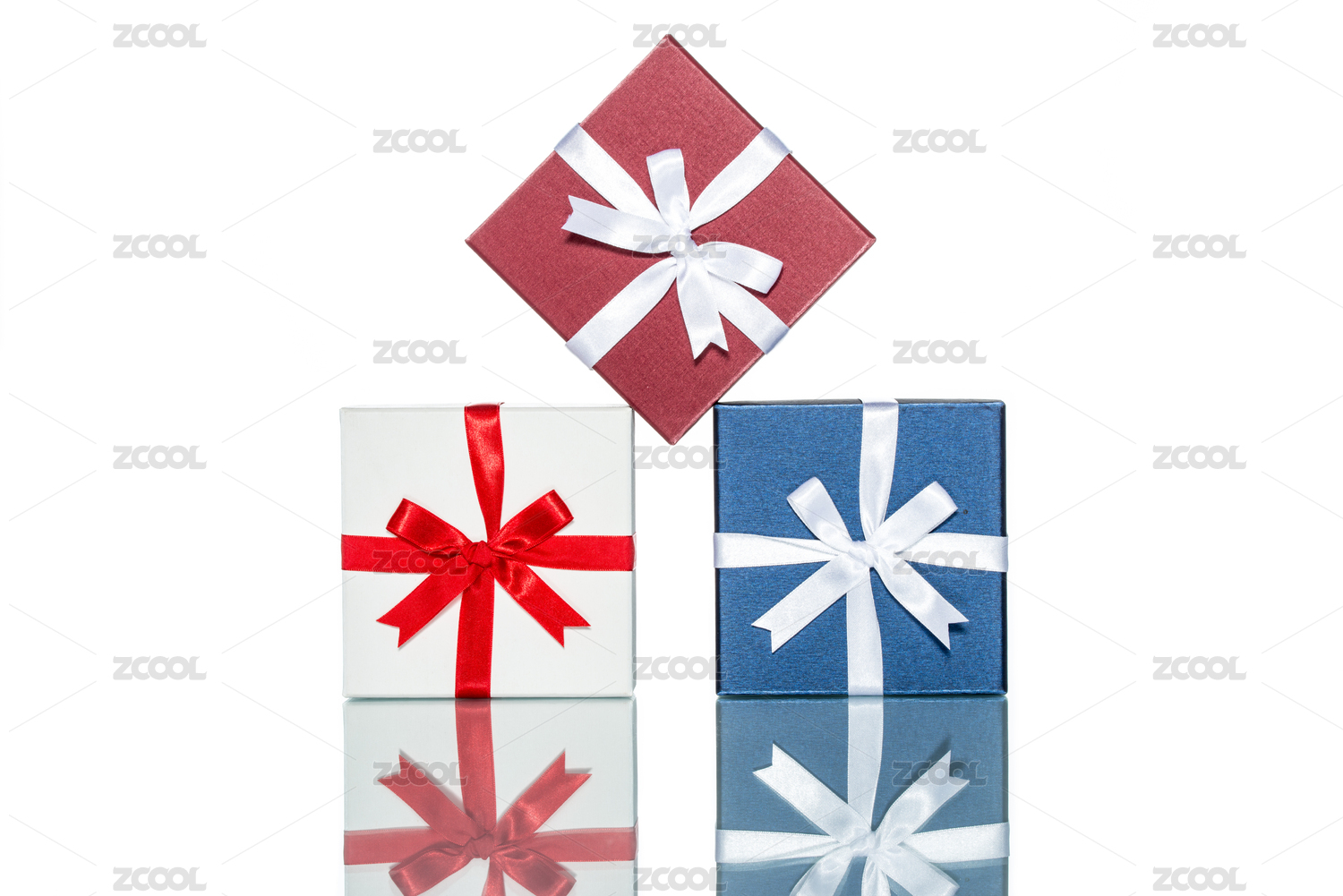 对于在白色背景孤立美丽绸包裹的节日事件奢华彩色礼品盒