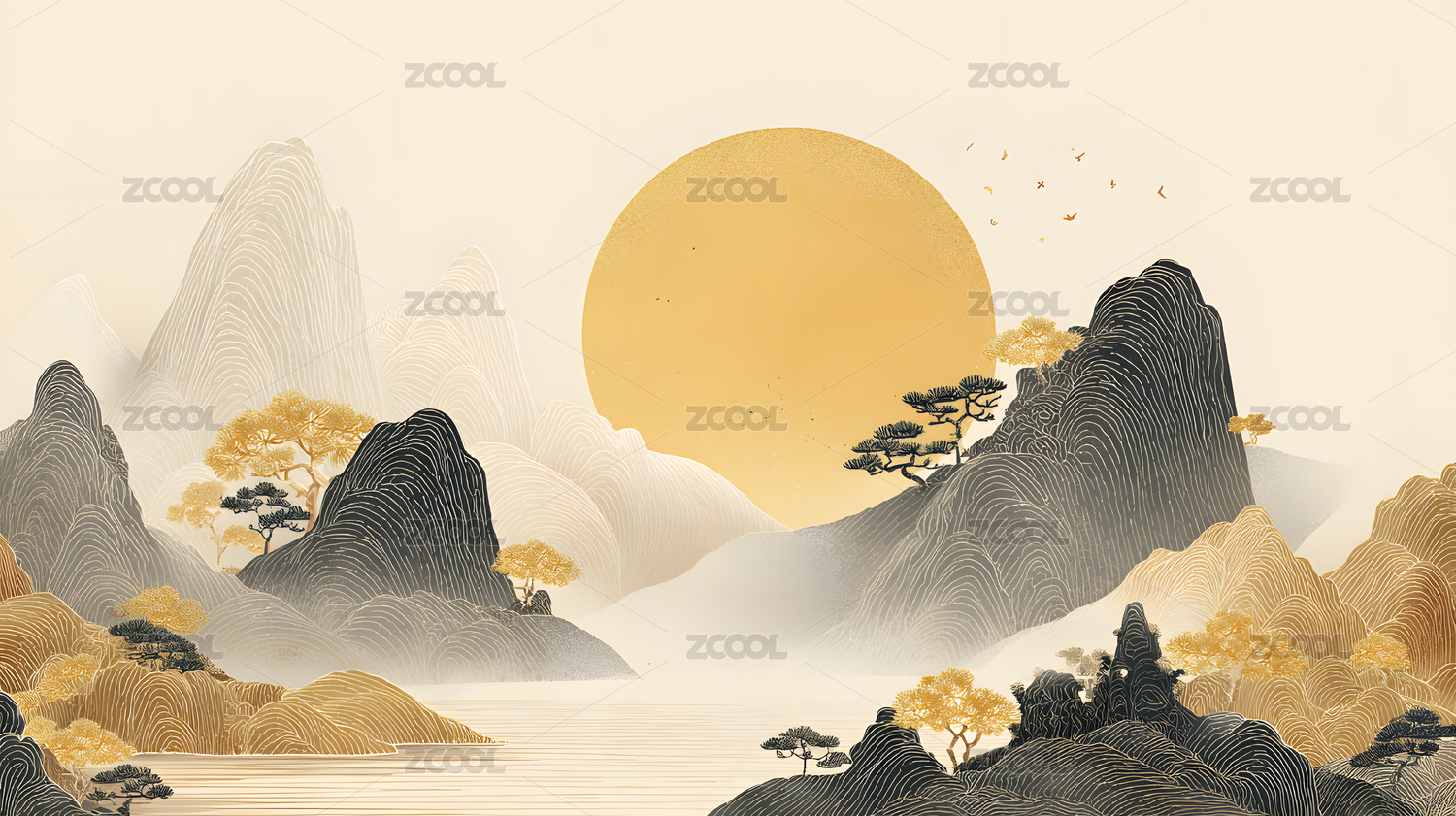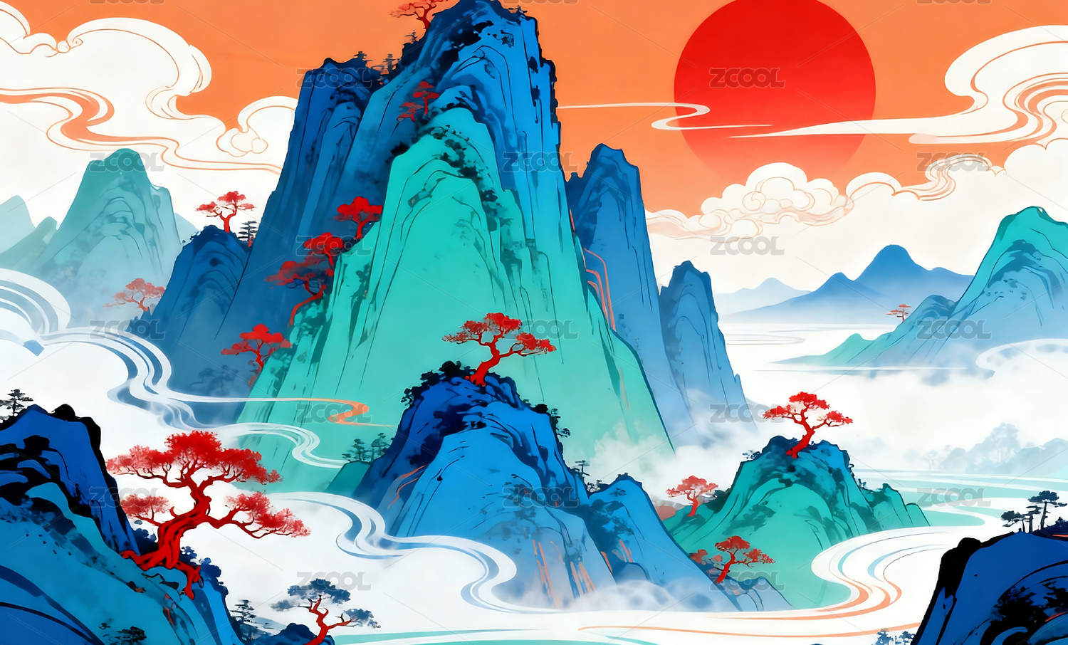 国风,插画,山水,水墨,扁平,国潮风,中式,传统,新中式,中国