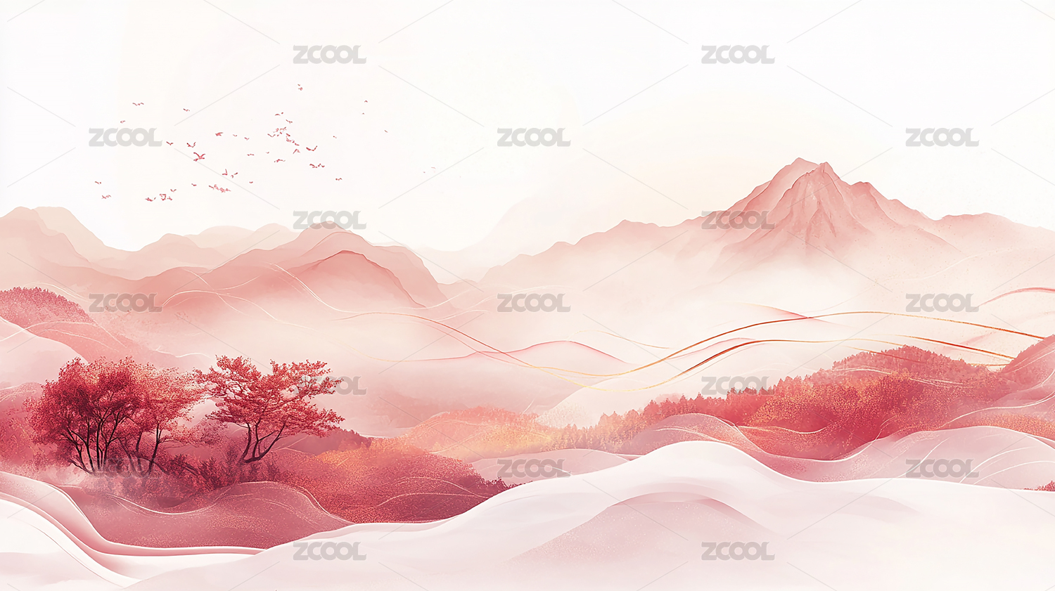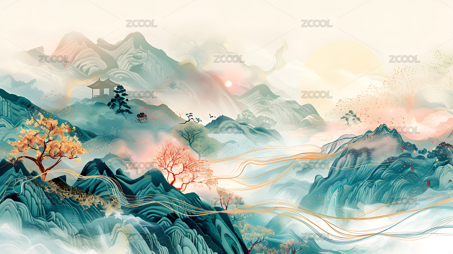 国风,插画,山水,水墨,扁平,国潮风,中式,传统,新中式,中国
