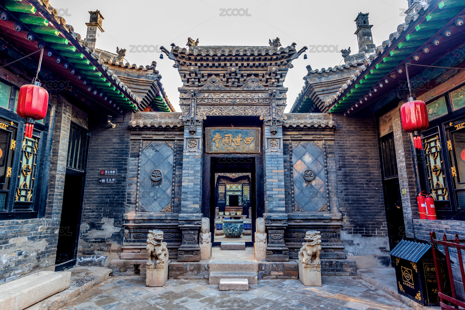 中国山西省祁县乔家堡村乔家大院园林建筑