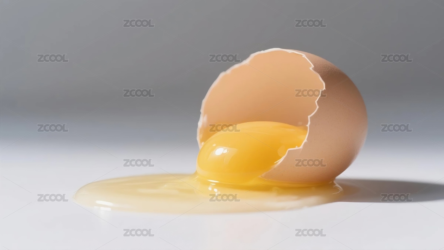 破裂蛋壳中流淌的鲜鸡蛋黄