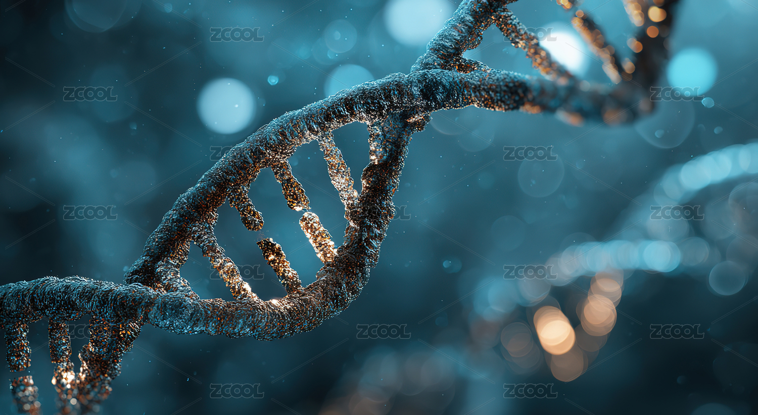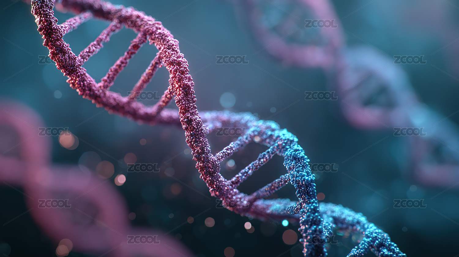 发光的蓝色透明 DNA 螺旋 3D 结构