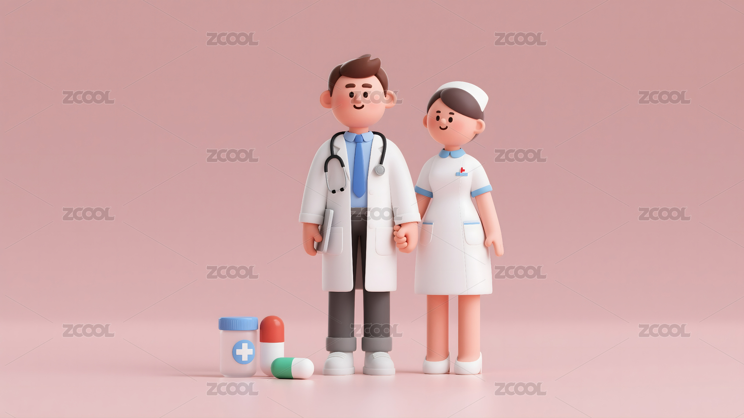 医生,护士,卡通,医药箱,药箱,急救箱,药瓶,药,身体保养,三维图形