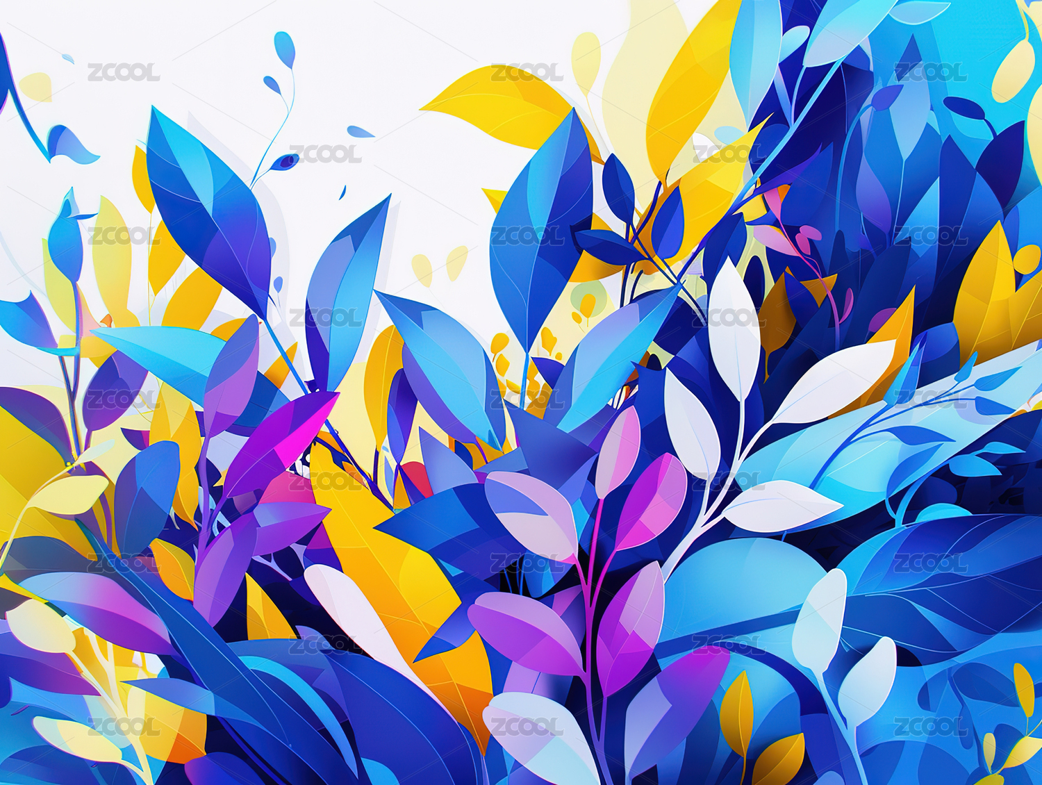 数码叶子藤曼花朵装饰抽象图形海报背景
