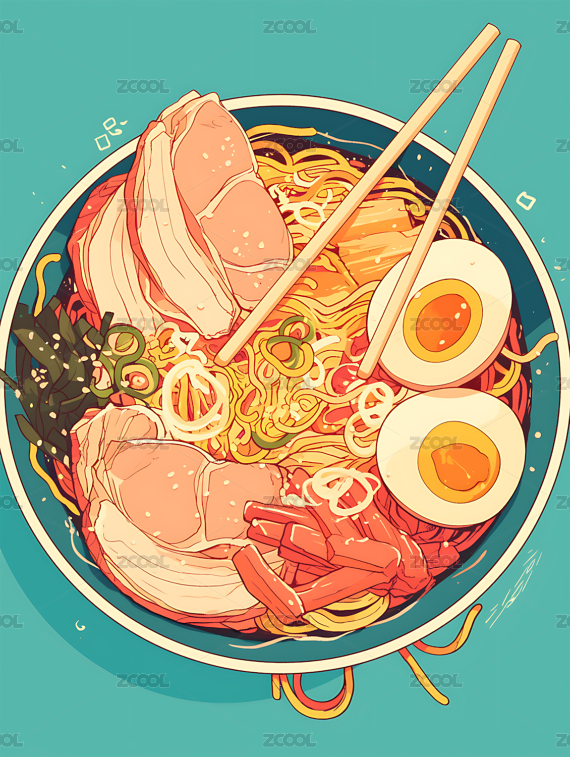 日式拉面复古日漫插图