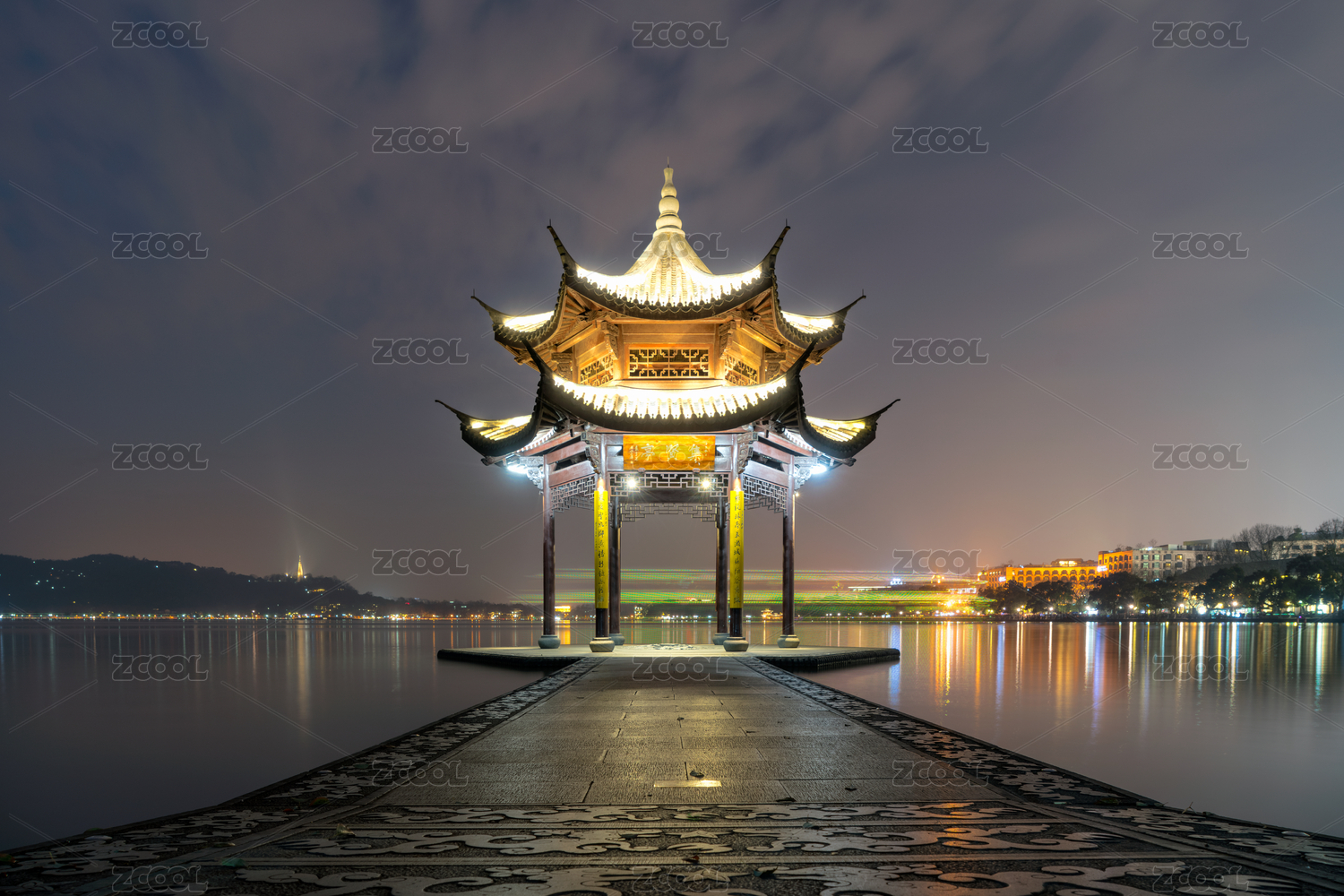 西湖,集贤亭,湖水,空气质量,环境,旅游,文化,灯光,夜景,乌云