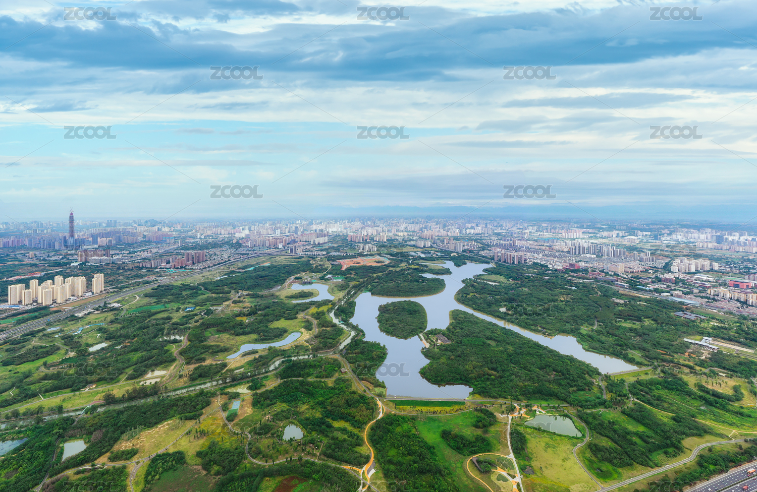 成都龙泉驿区青龙湖湿地公园白昼航拍