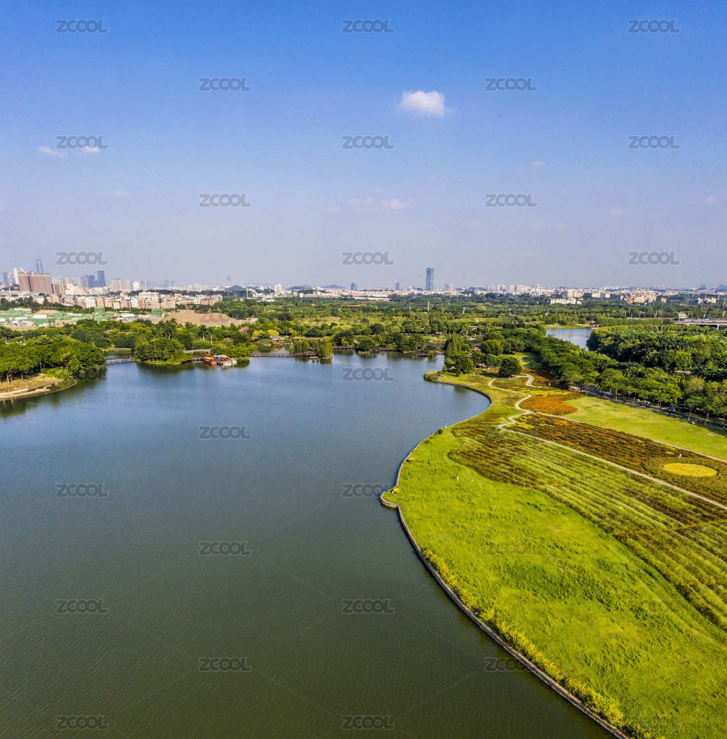 航拍海南海口美舍河凤翔湿地公园海绵城市