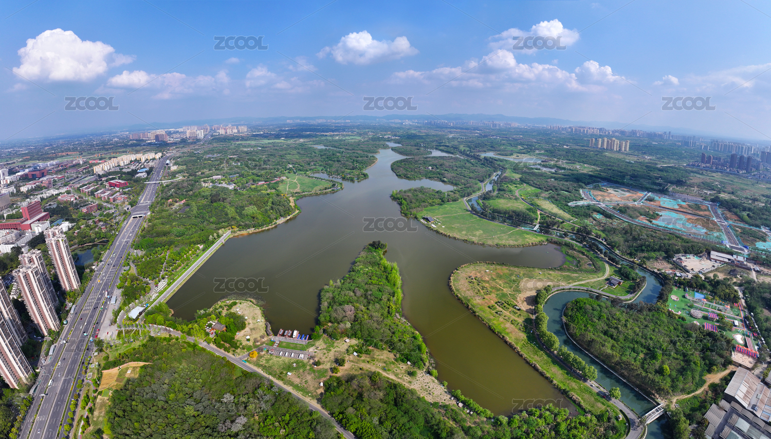 四川省成都市龙泉驿区青龙湖湿地公园航拍