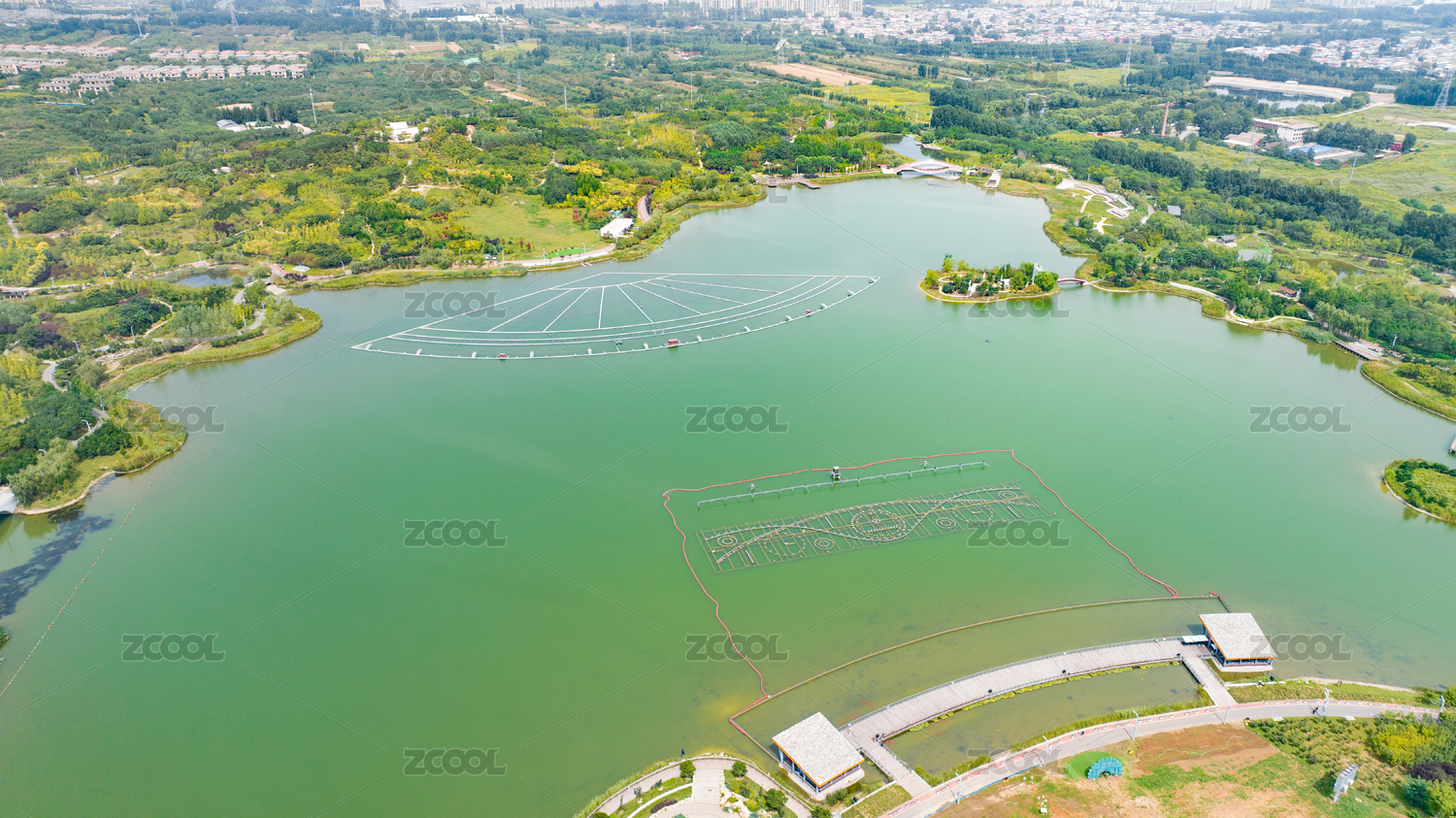 航拍河北省石家庄市鹿泉区龙泉湖湿地