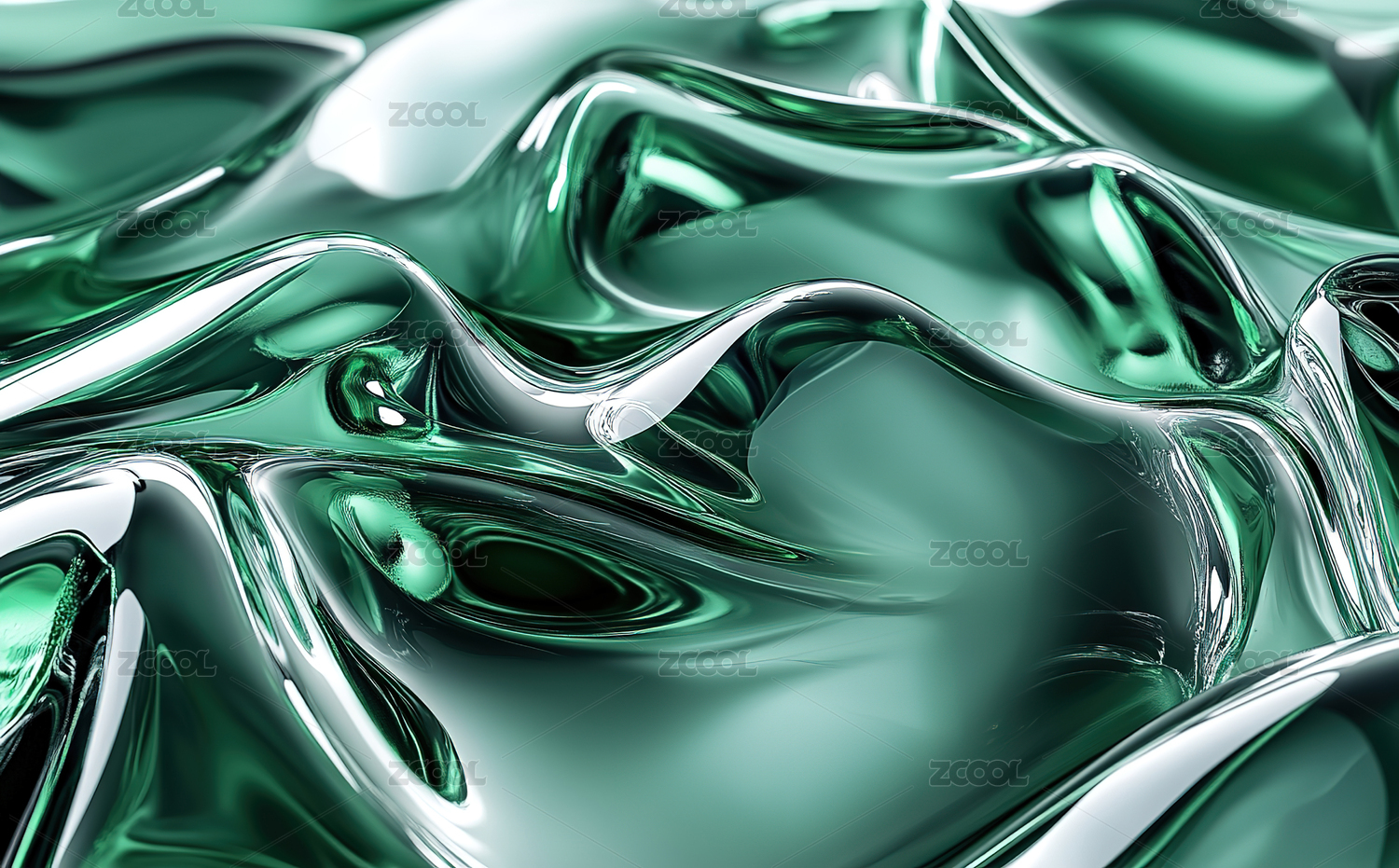 时尚波纹动感高档绿色混色流体渐变抽象背景