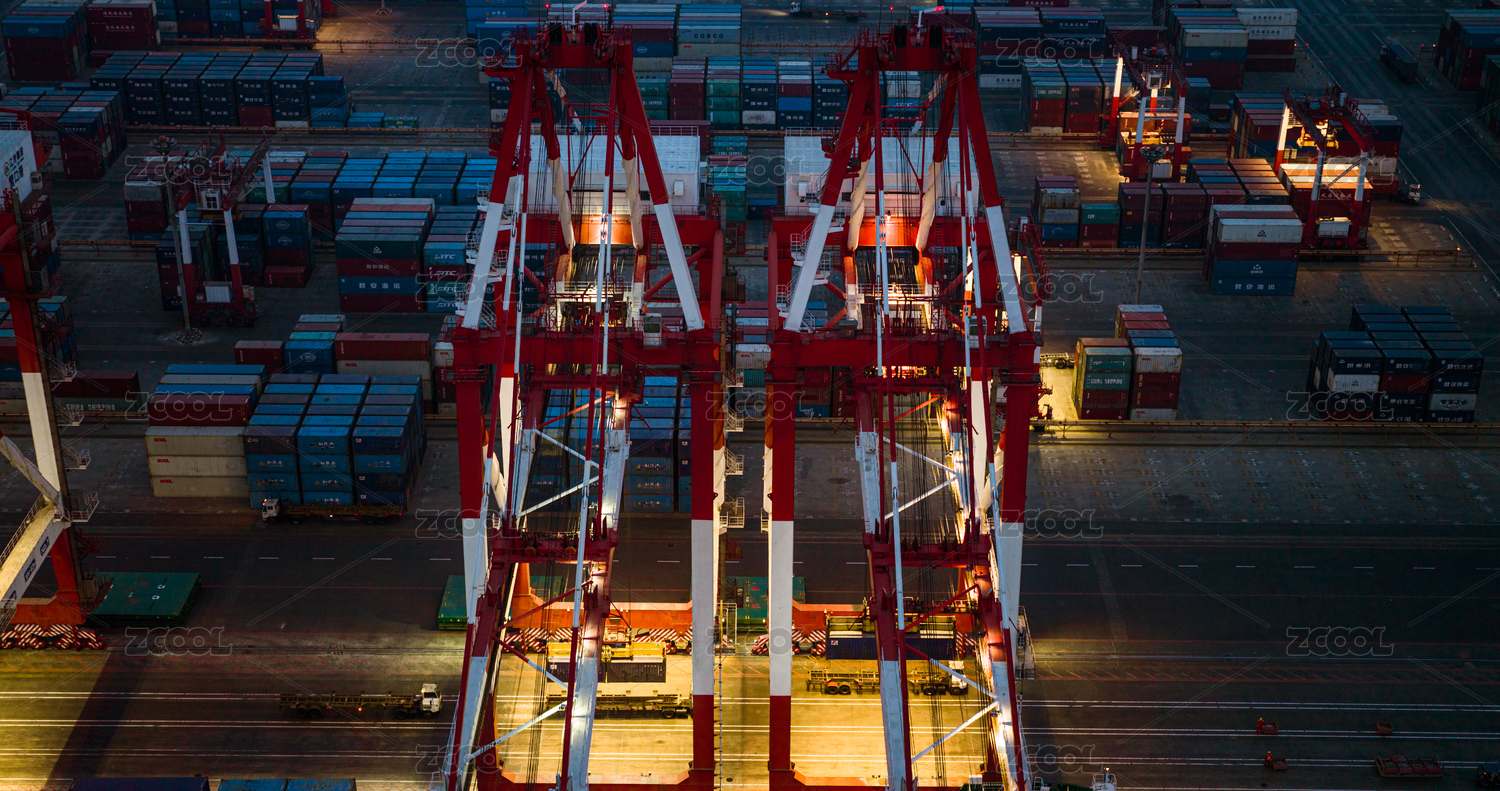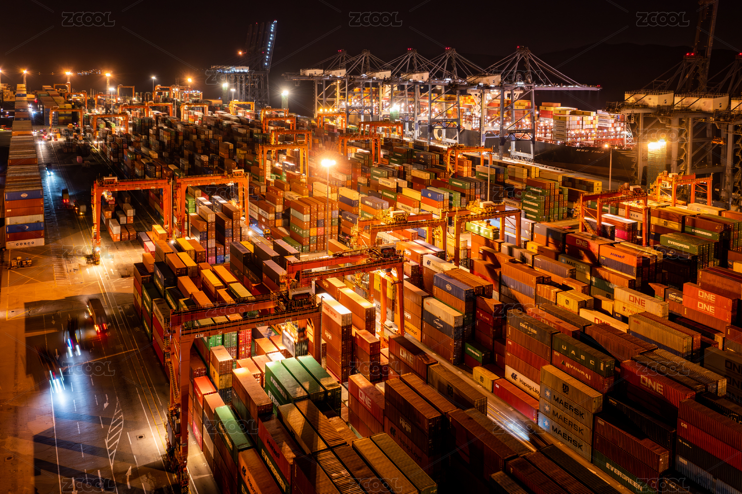 海南自贸港免税进出海口港集装箱夜景蓝调高