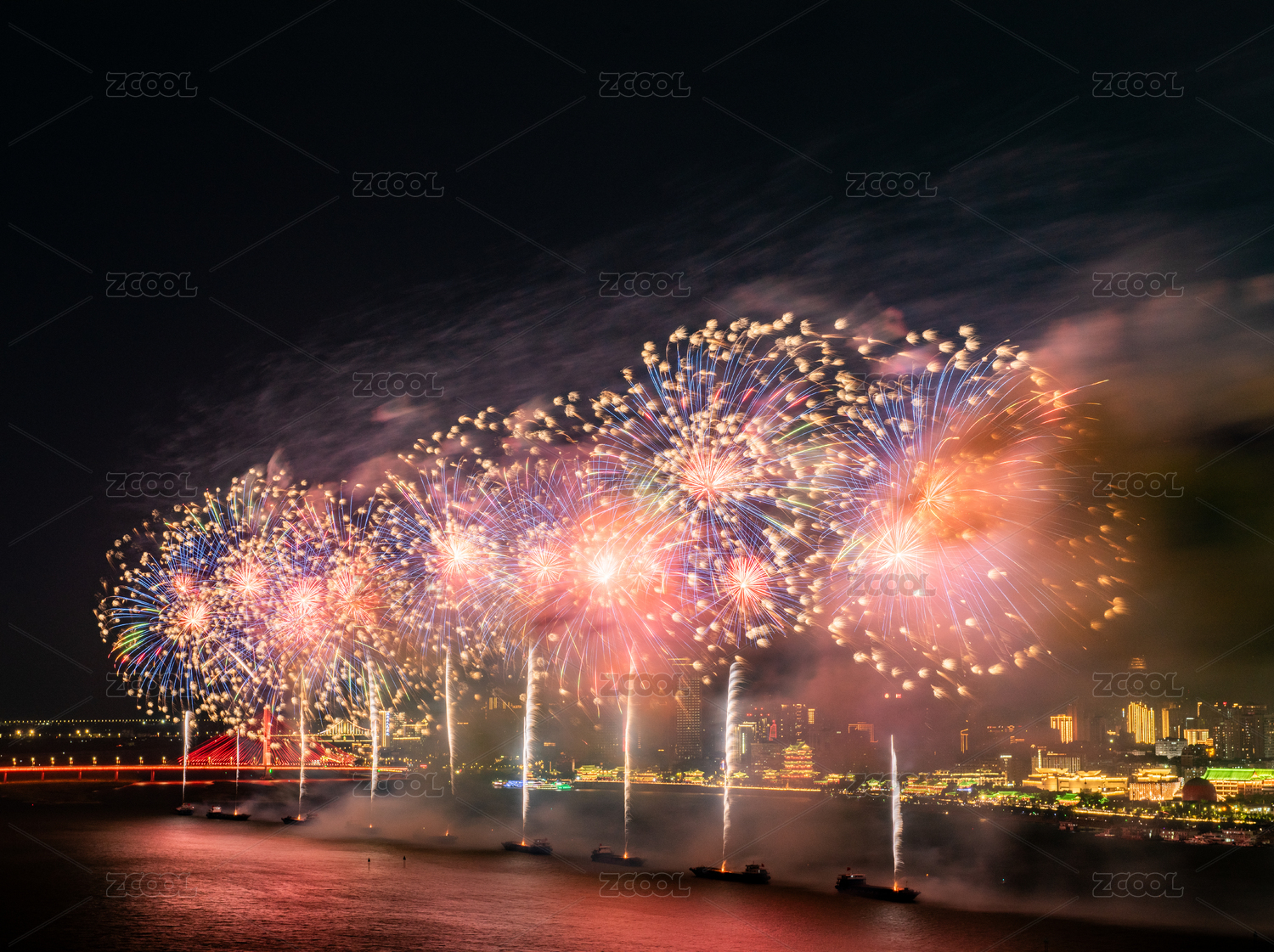 晚上绽放的烟花、南昌烟花秀
