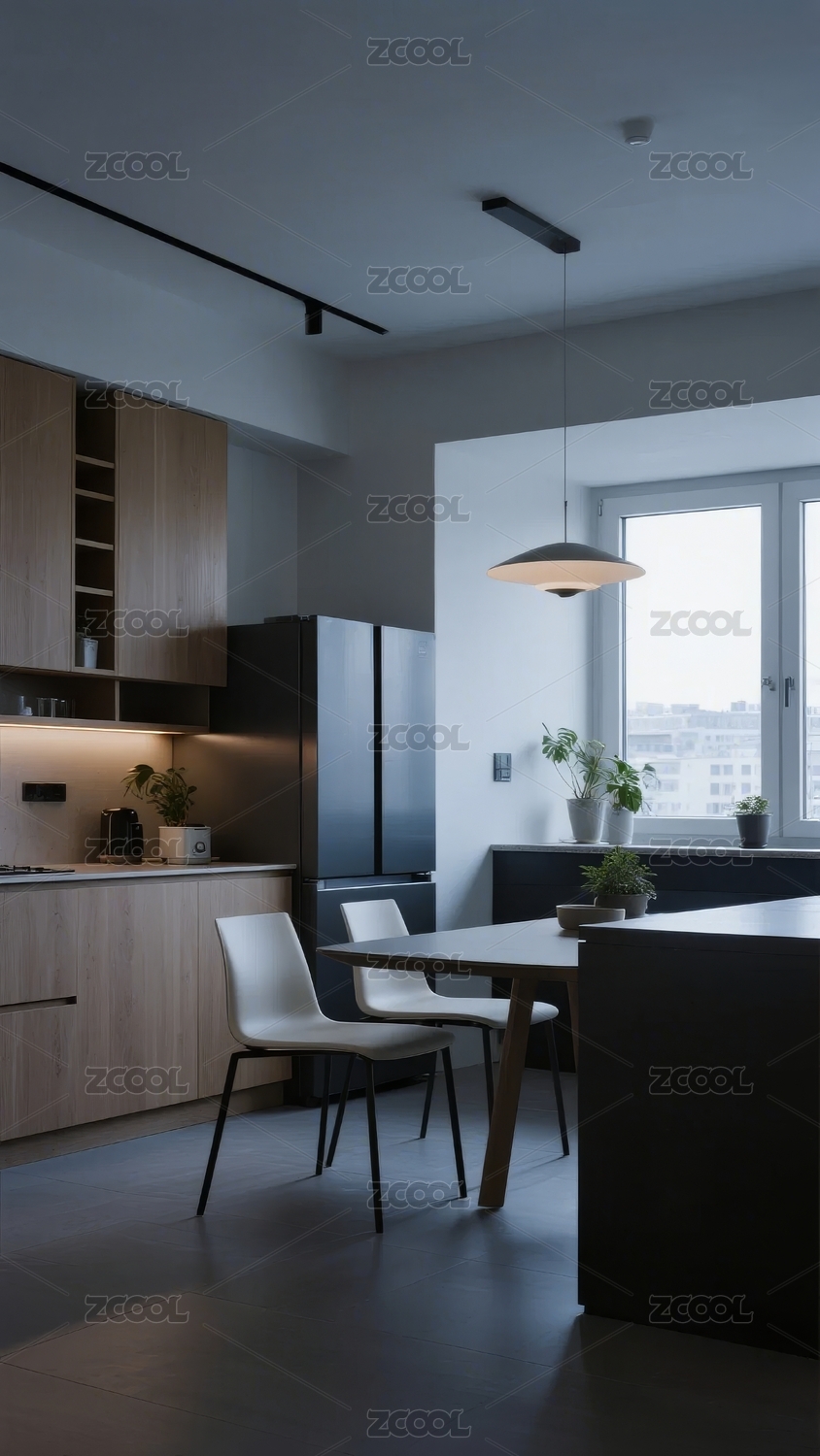 现代简约厨房与餐厅一体化设计