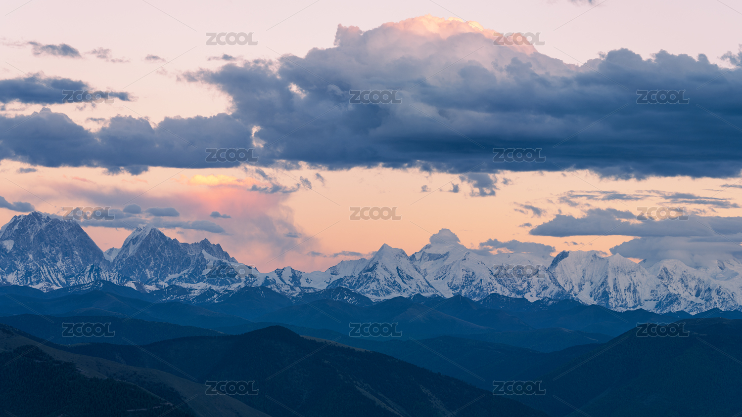 四川甘孜藏族自治州黑石城眺望贡嘎群山日落