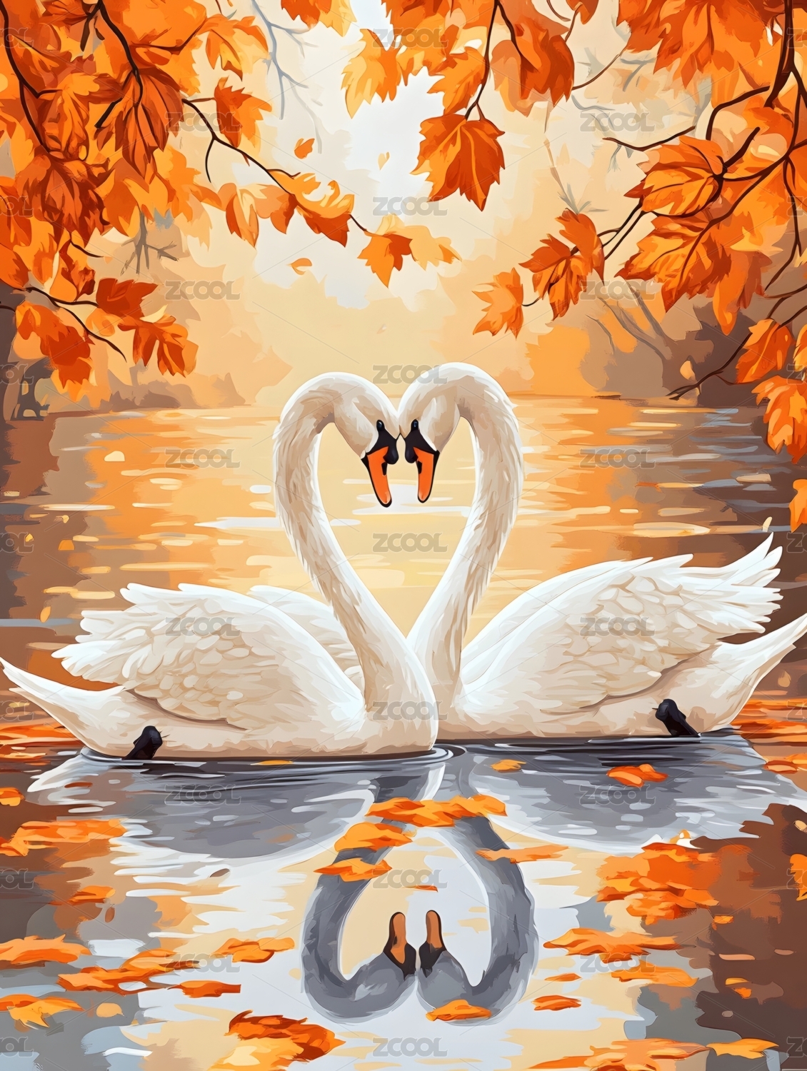 两只天鹅在池塘里游玩,春天的柳树生机盎然