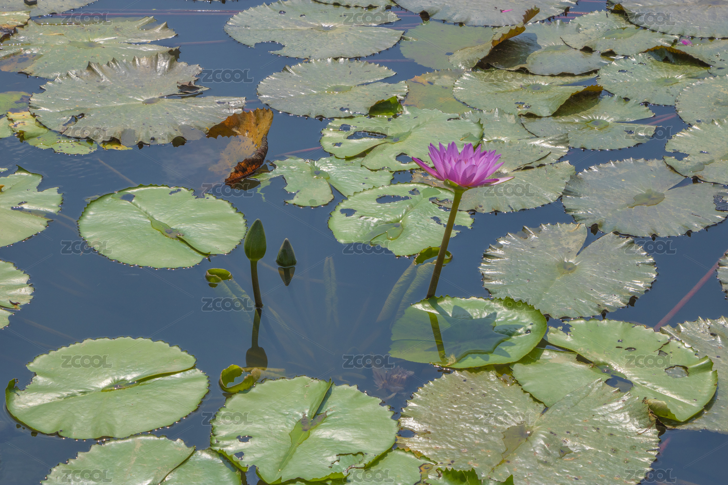 深圳洪湖公园水面上漂浮的紫色睡莲