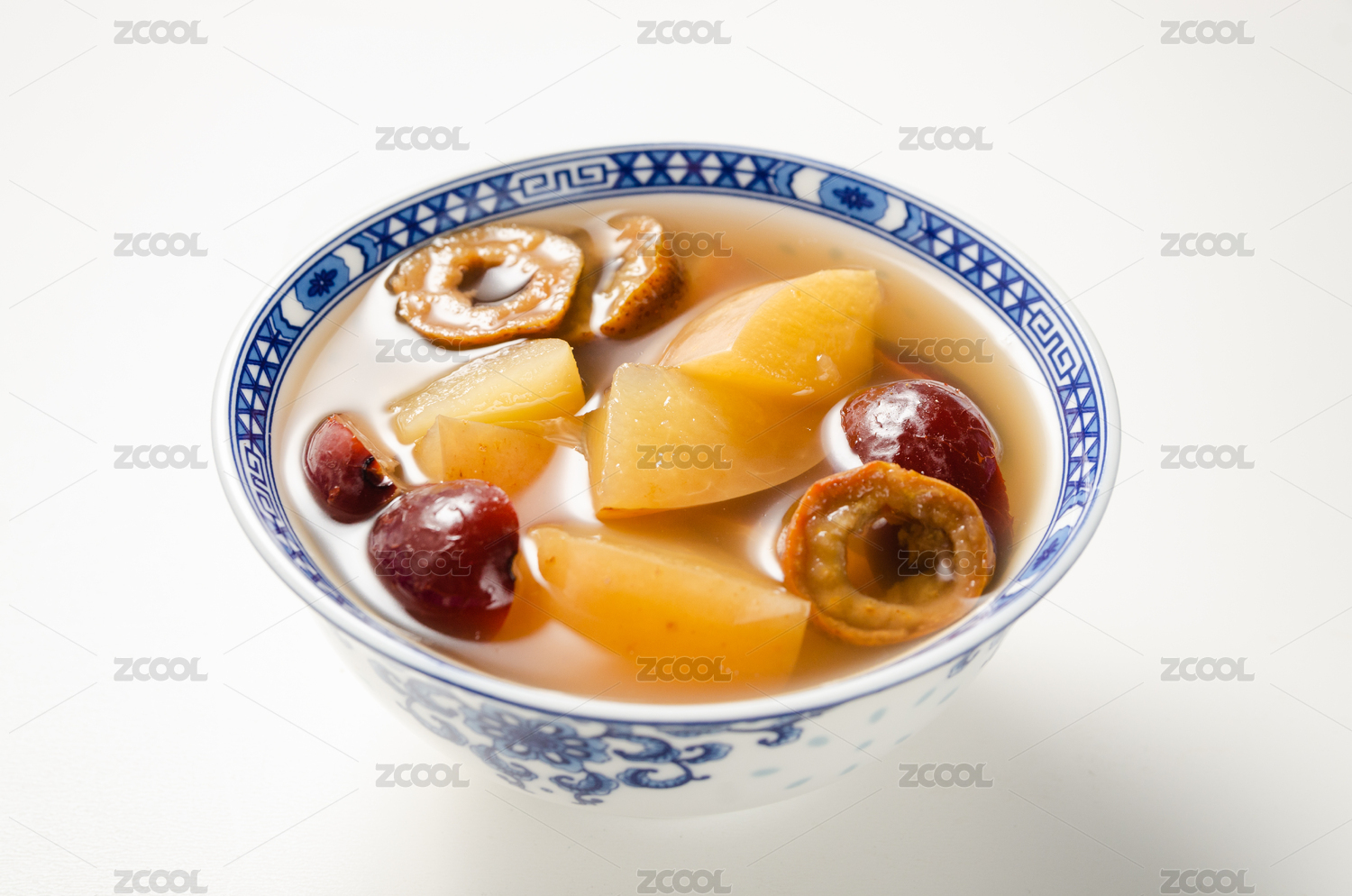 一碗养生补气血的桂圆红枣茶放在木纹桌上