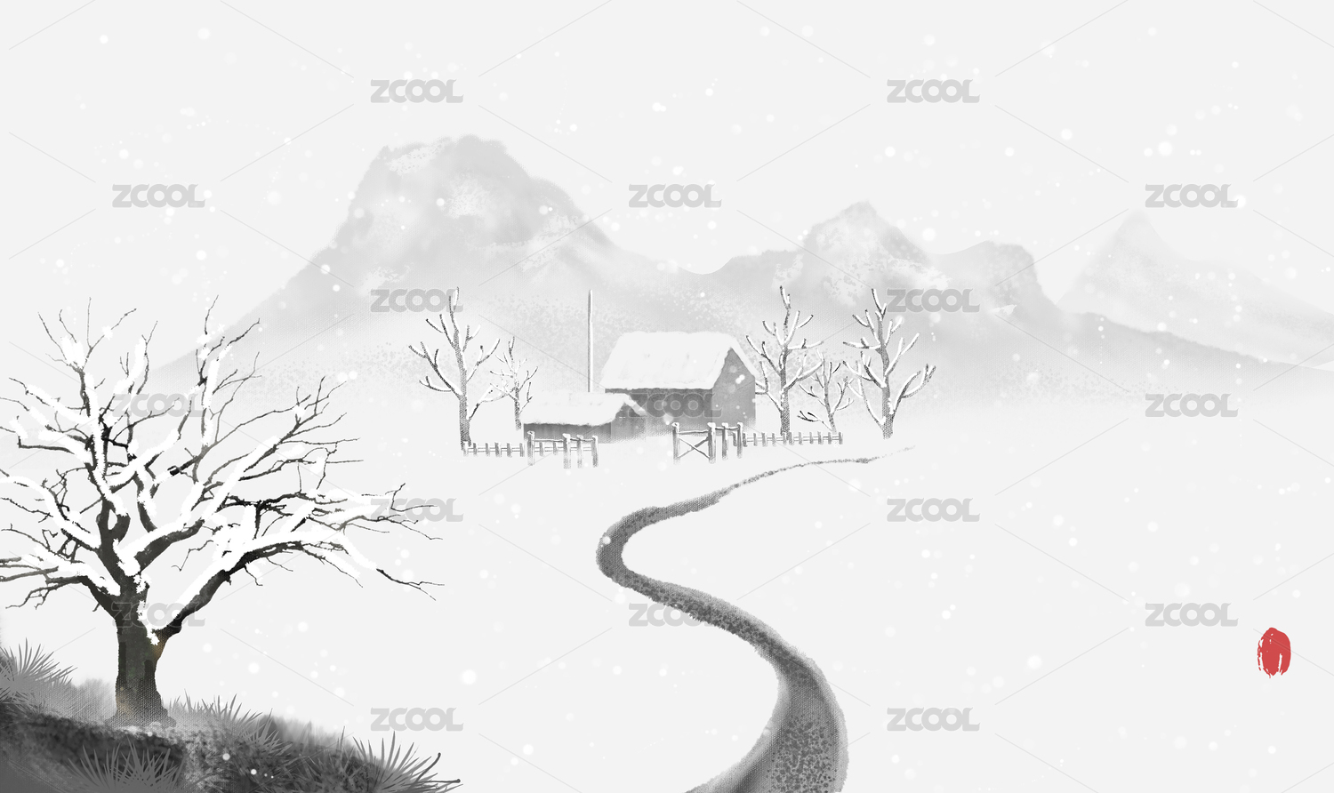 卡通手绘唯美冬天雪景小寒大寒冬季插画