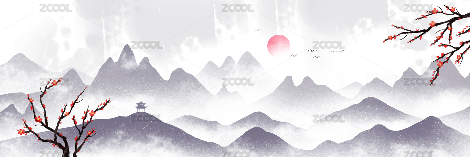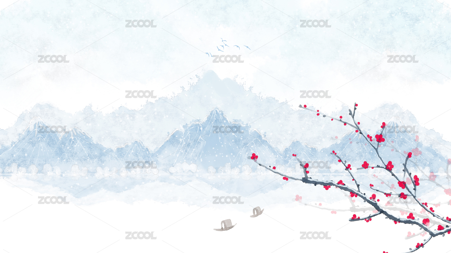 中国风抽象艺术中国传统梅花山水诗意水墨画