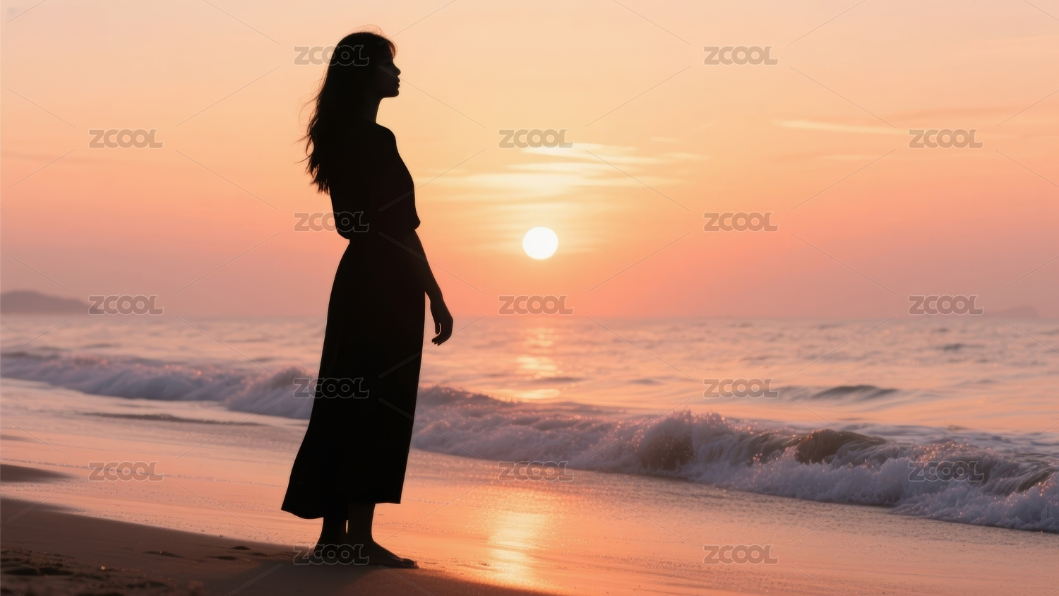 一位亚洲女性在广东省惠州市巽寮湾海边旅游