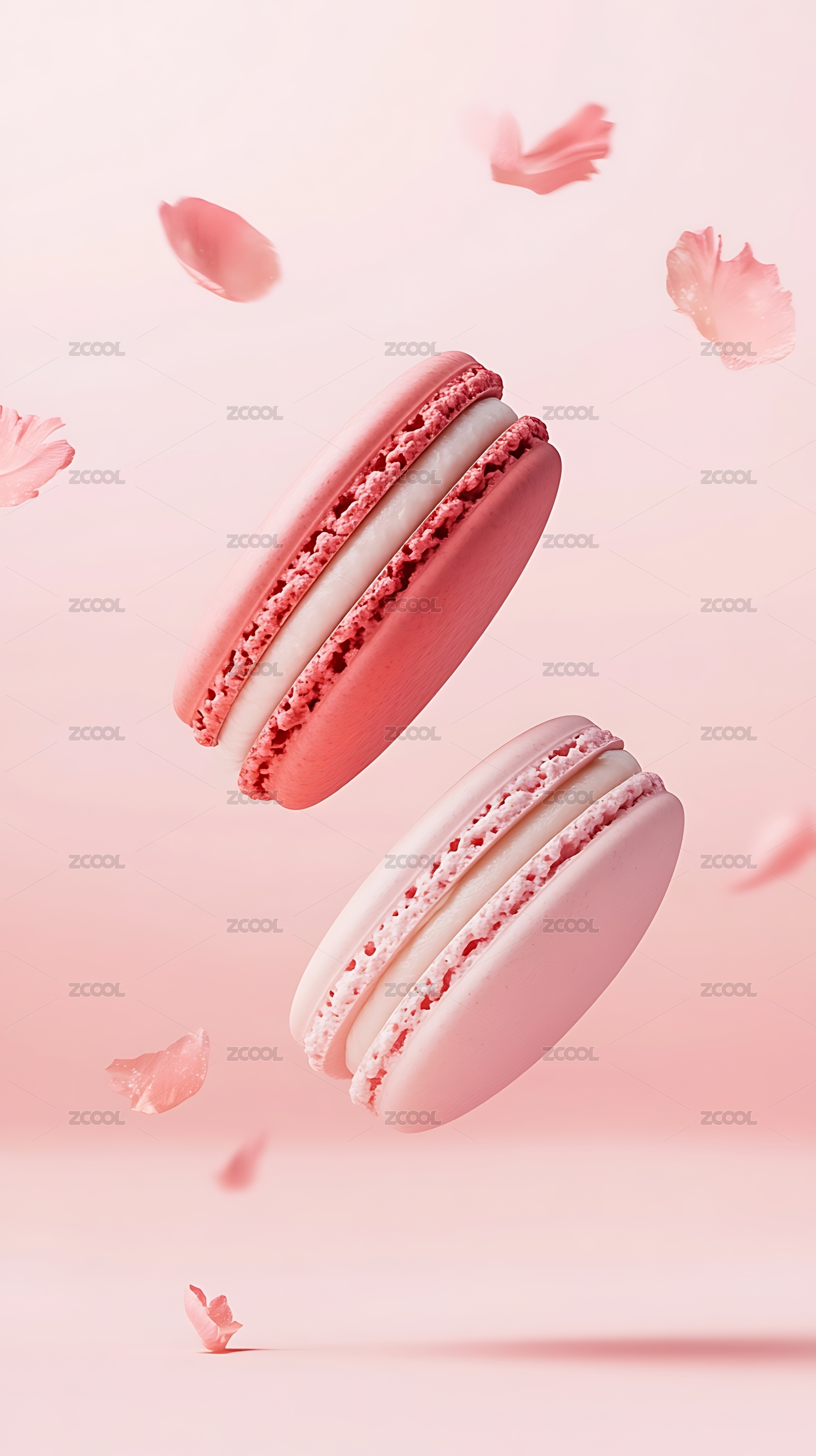 粉色背景下飞舞的马卡龙