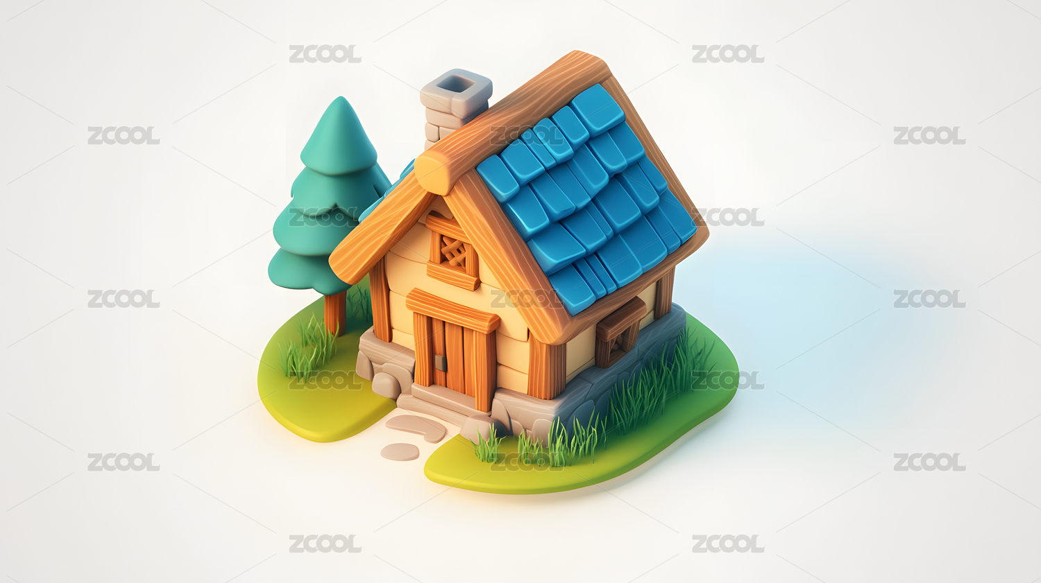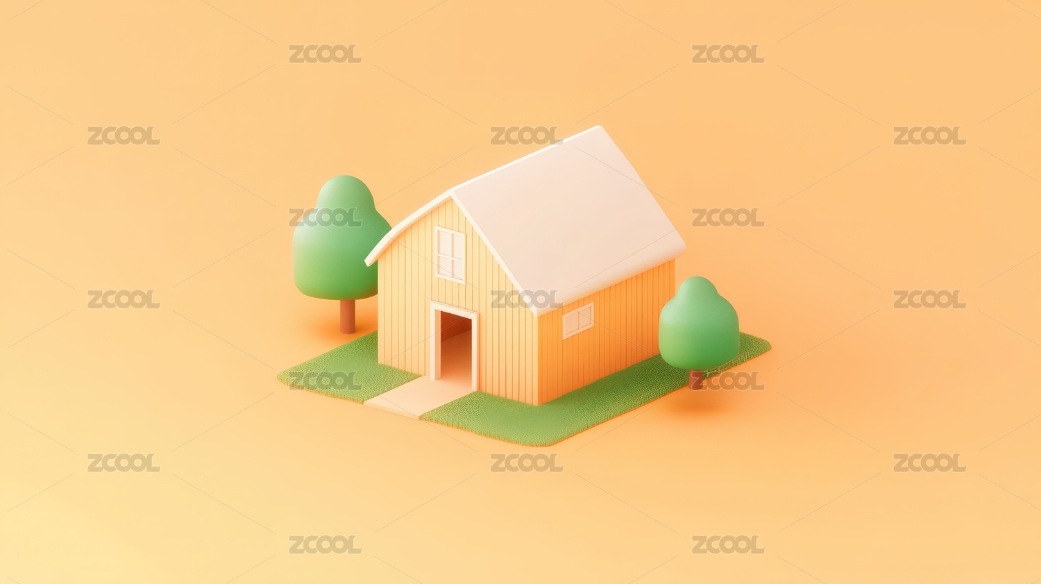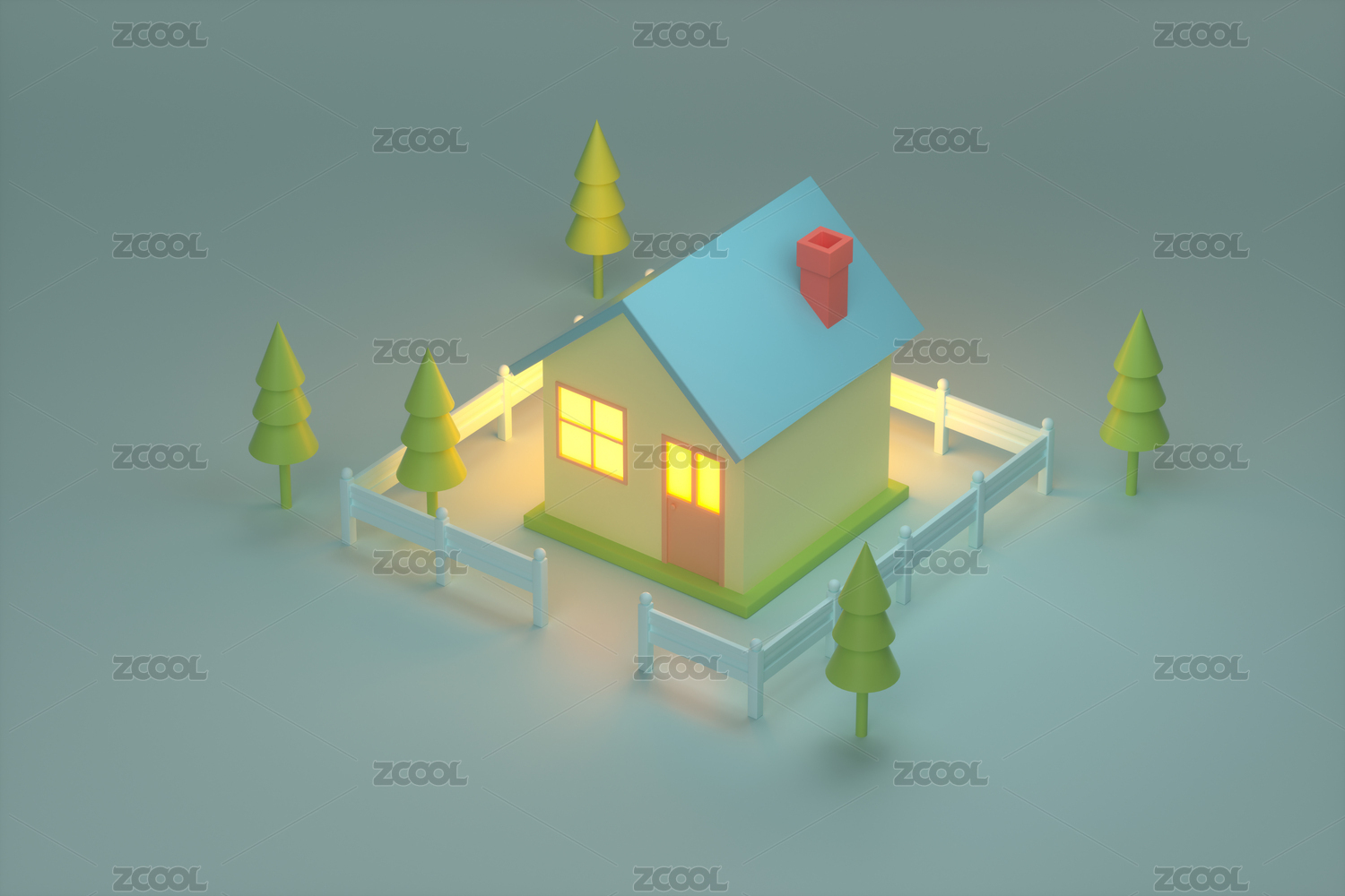 金秋,秋天,木屋,树林,森林,金色,房子,等轴测,3D