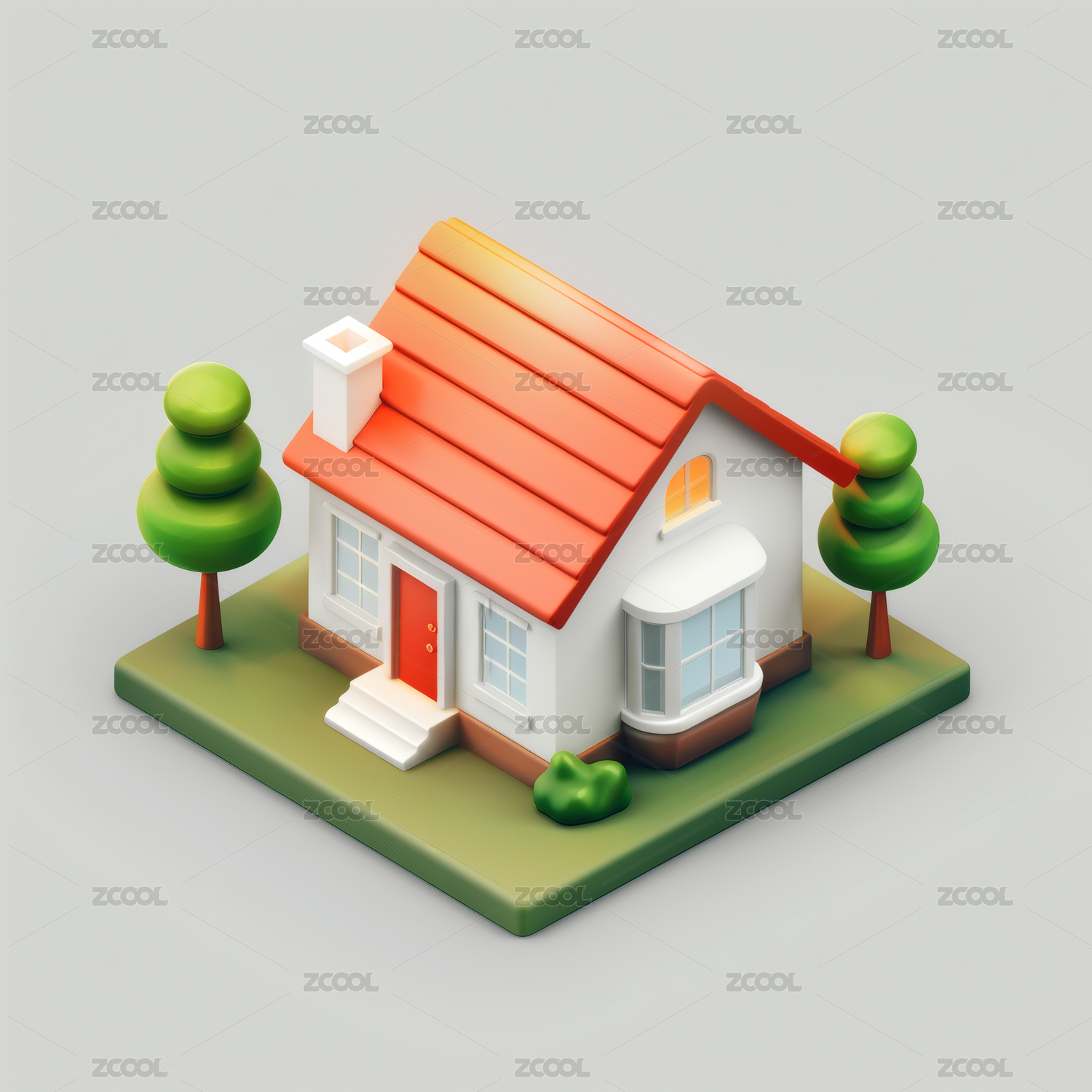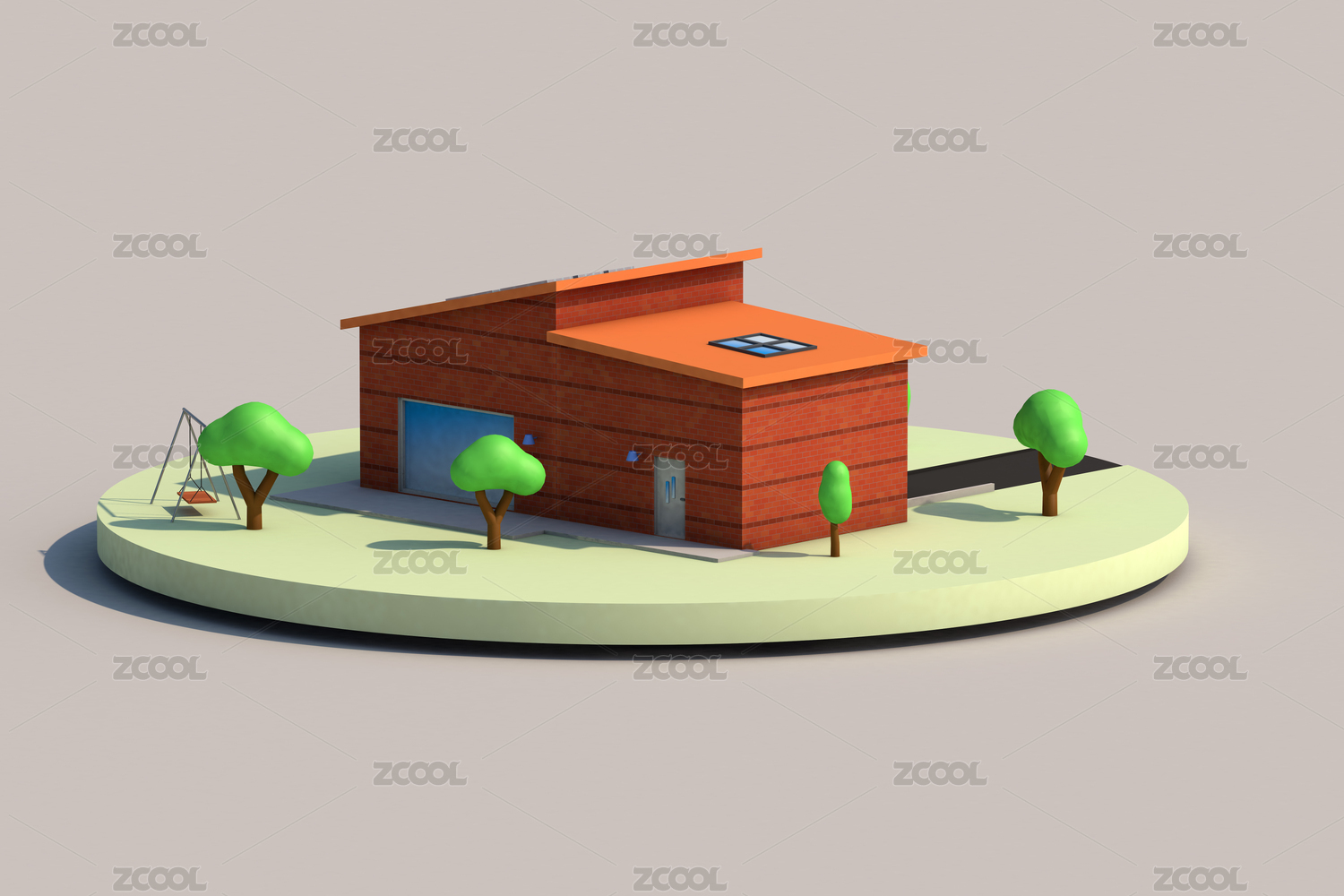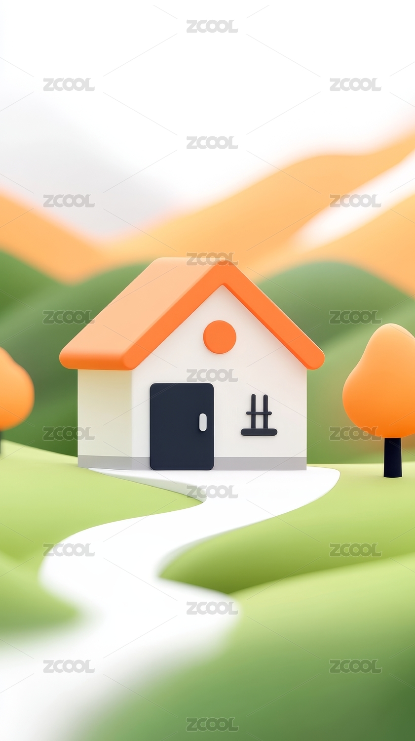 金秋,秋天,木屋,树林,森林,金色,房子,等轴测,3D