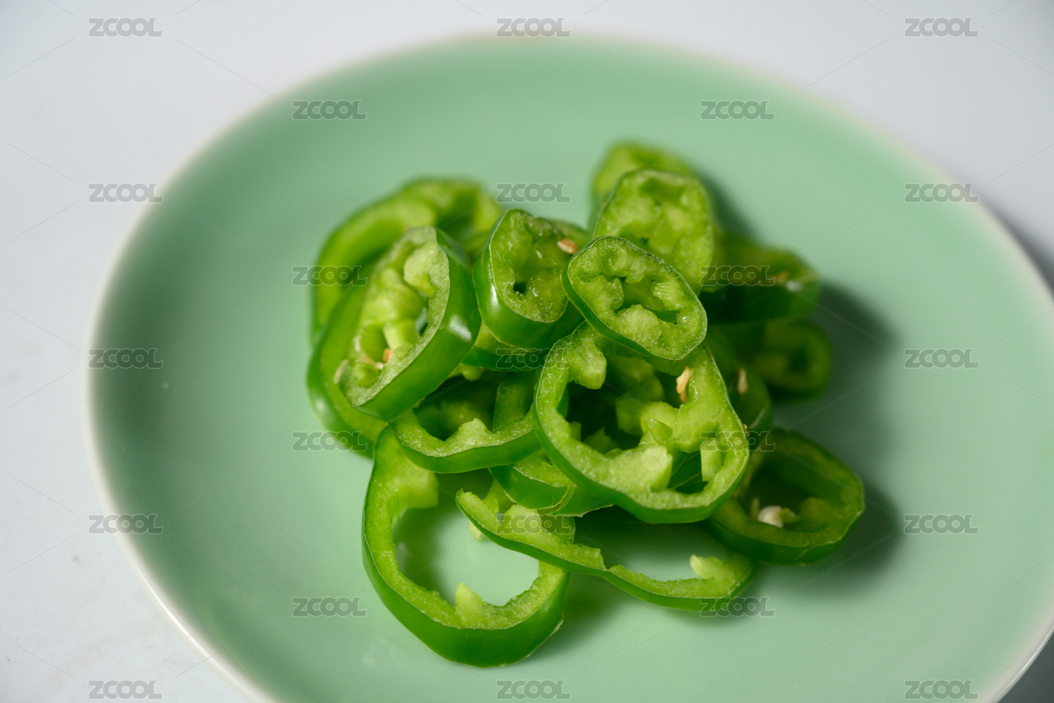 桌面上的盘子里的美味可口的新鲜辣椒圈