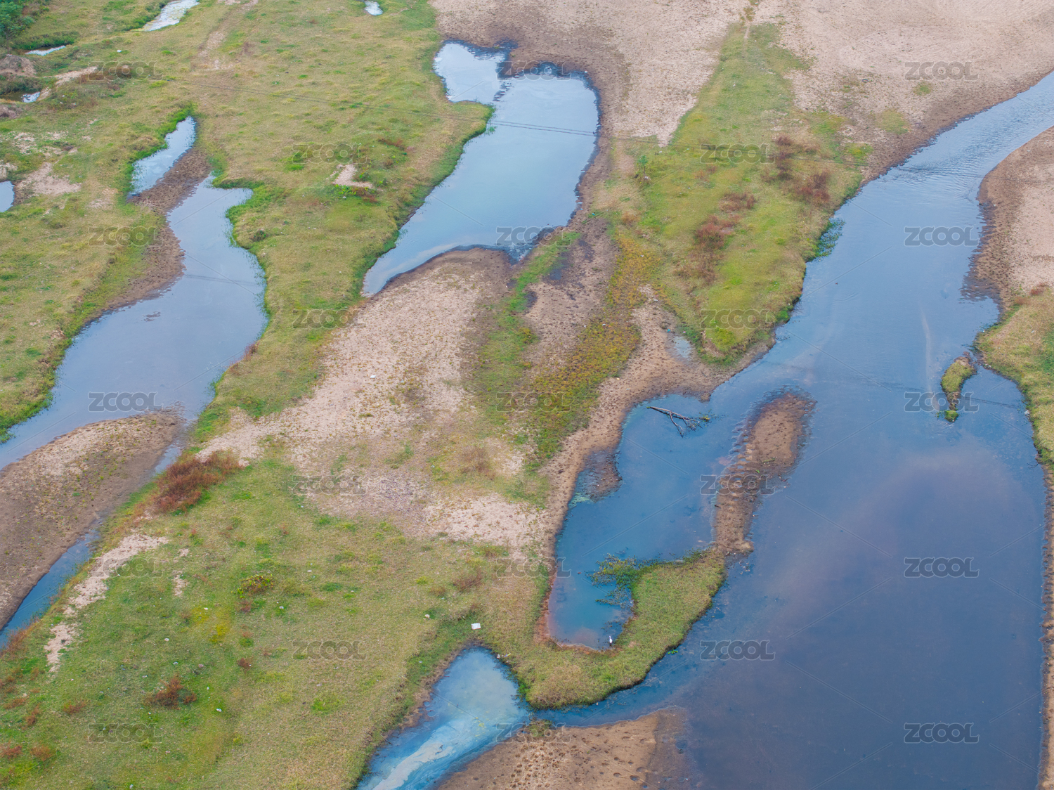清新明亮俯视航拍湿地湖泊的水草水藻插画