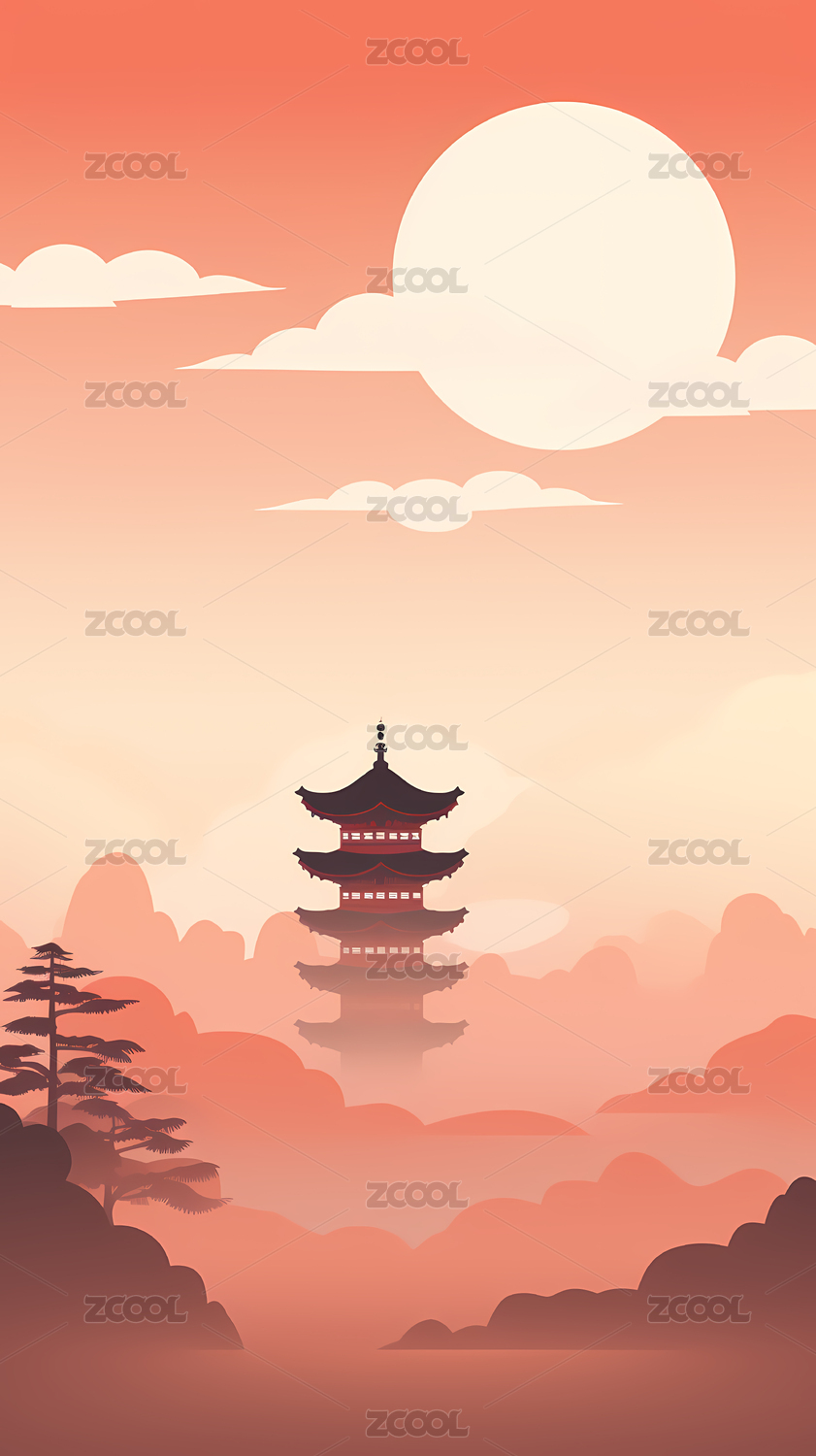 复古风,中式,古风,楼阁,简约,插画,建筑