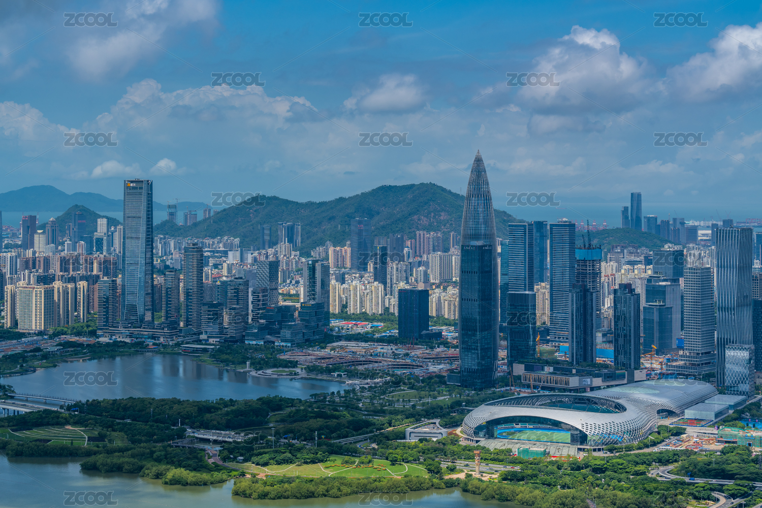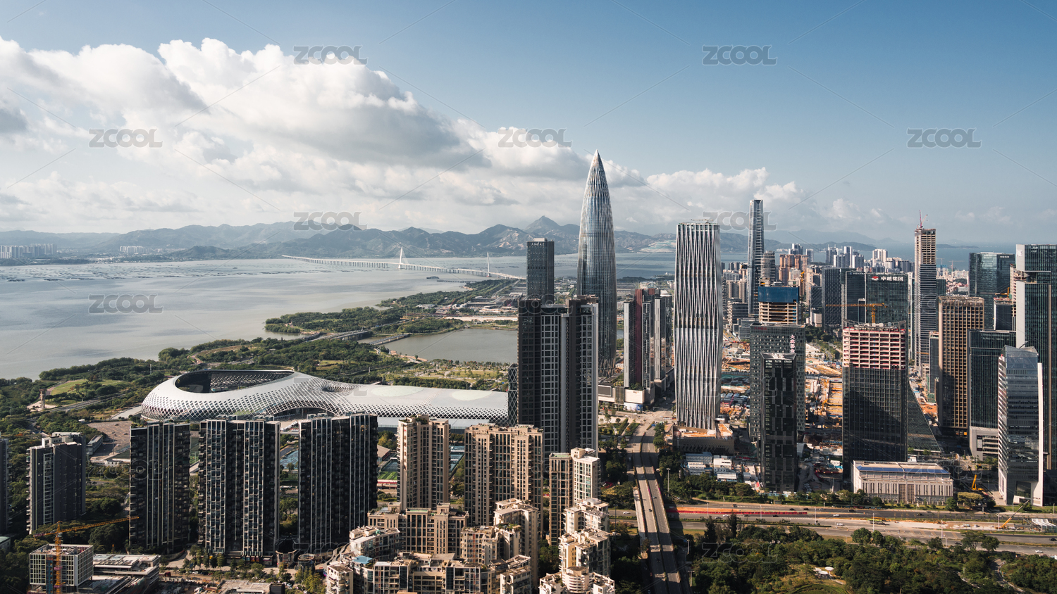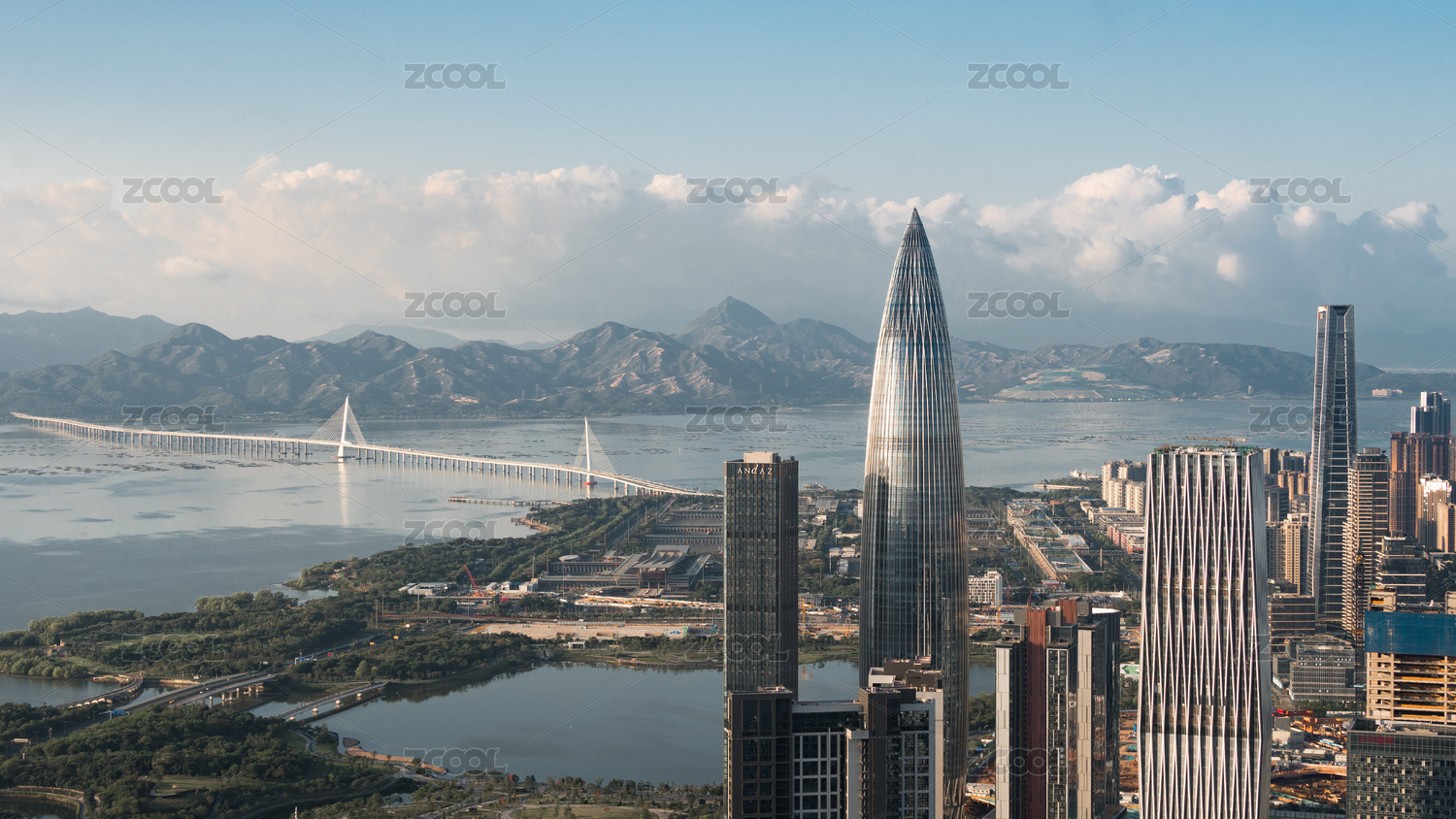 中国深圳大湾区风光之春笋和深圳湾大桥