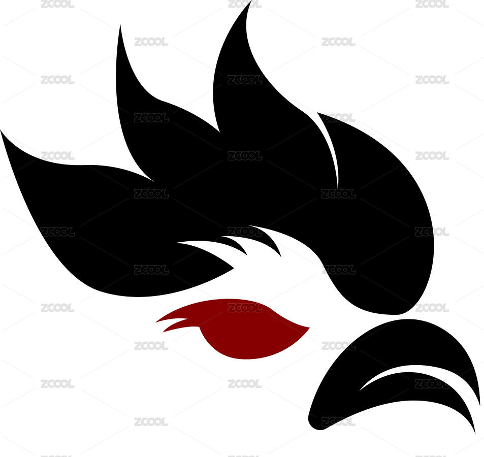 黑色和红色简约设计的公鸡头矢量logo