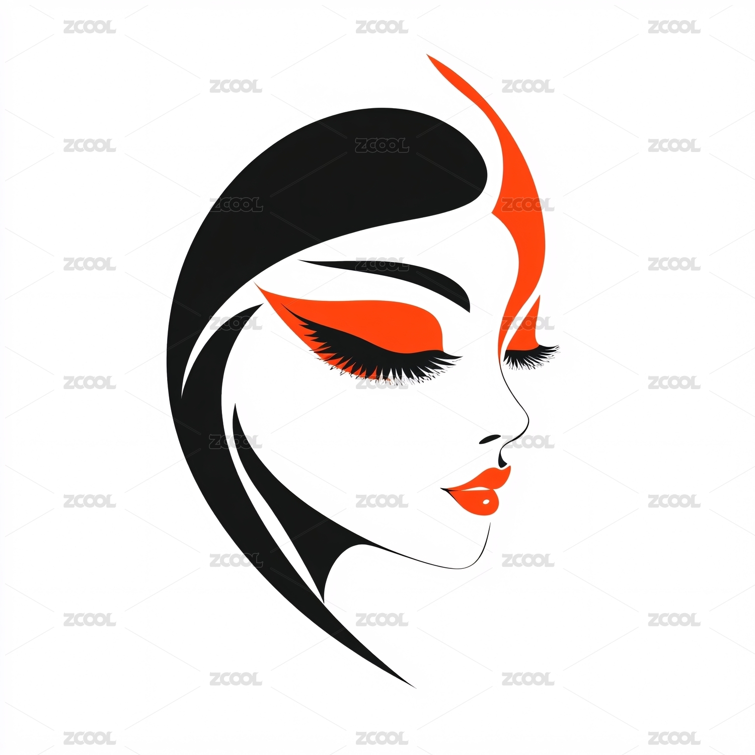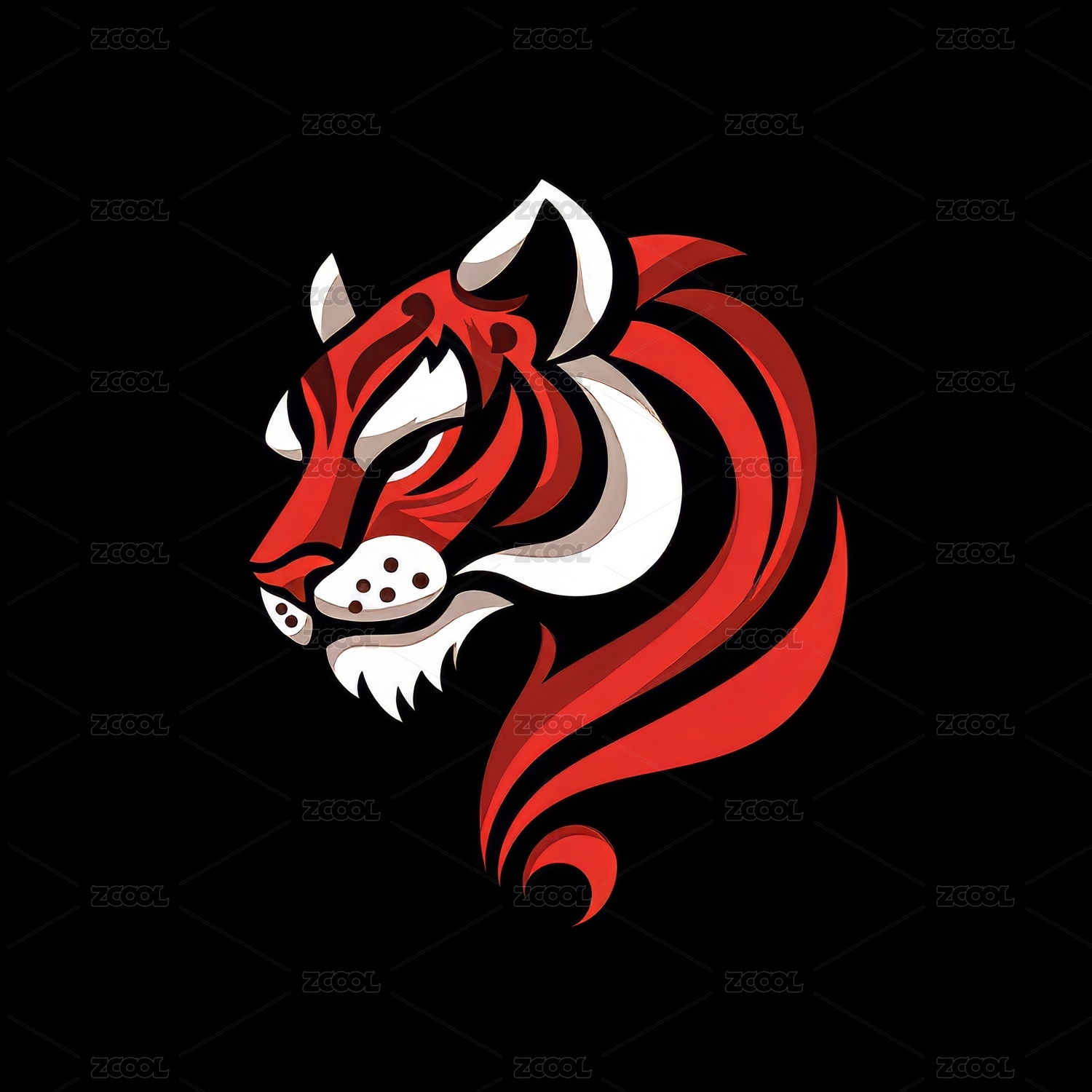 红白虎头侧影标志