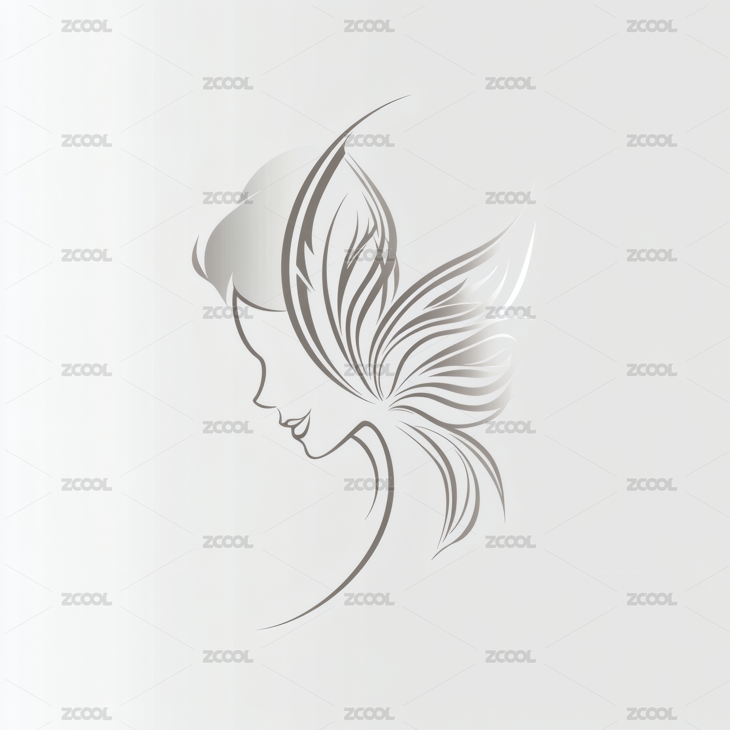 带羽翼造型的女性侧面轮廓